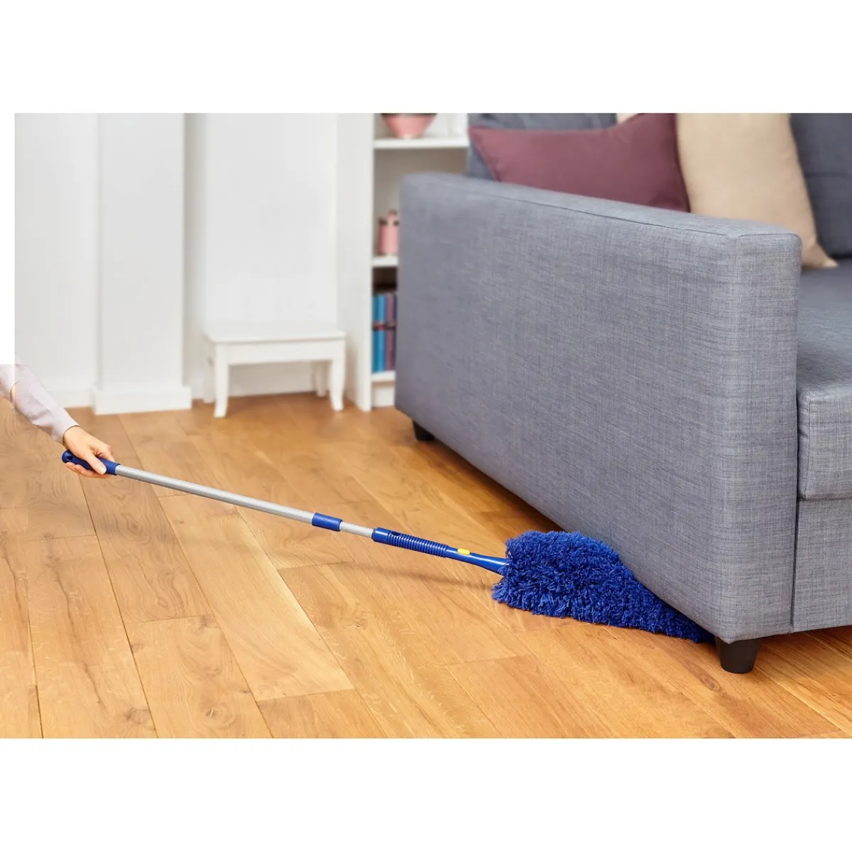 Mit unserem Maxi-Teleskop-Staubfänger wird Staubwischen zum Kinderspiel! Erreichen Sie spielend hohe Regale, Lampen und mehr, denn er lässt sich von 64 bis 172 cm ausziehen und sogar knicken. So bleibt kein Staubkorn unerreicht! Bei Bedarf können Sie den Stiel abnehmen und den Staubfänger direkt von Hand nutzen. Machen Sie sich das Putzen leichter und effizienter mit diesem praktischen Helfer. Staub hat keine Chance mehr in schwer zugänglichen Ecken und Winkeln!