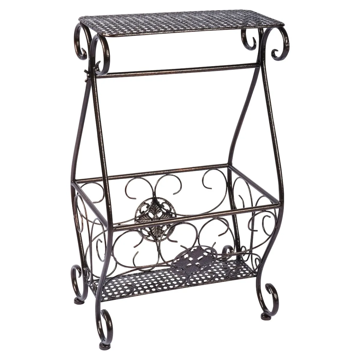 Ganz im Stil des Art déco, versprüht dieser Beistelltisch Romantik pur! Seine verschlungenen, floralen Elemente machen ihn zu einem sowohl dekorativen wie auch nützlichen Möbelstück. Im unteren Bereich punktet das Tischchen mit einer großen Ablage, in der allerlei Dinge wie Bücher, Zeitschriften etc. Platz haben.