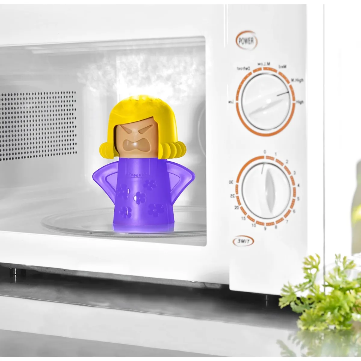 Bei der „sauren Susanne“ hat Dreck keine Chance: Einfach mit Essig und Wasser befüllen und in die Mikrowelle stellen. Während sie vor Wut förmlich kocht, sorgt ihr heißer Dampf dafür, dass selbst der hartnäckigste Schmutz verschwindet.
