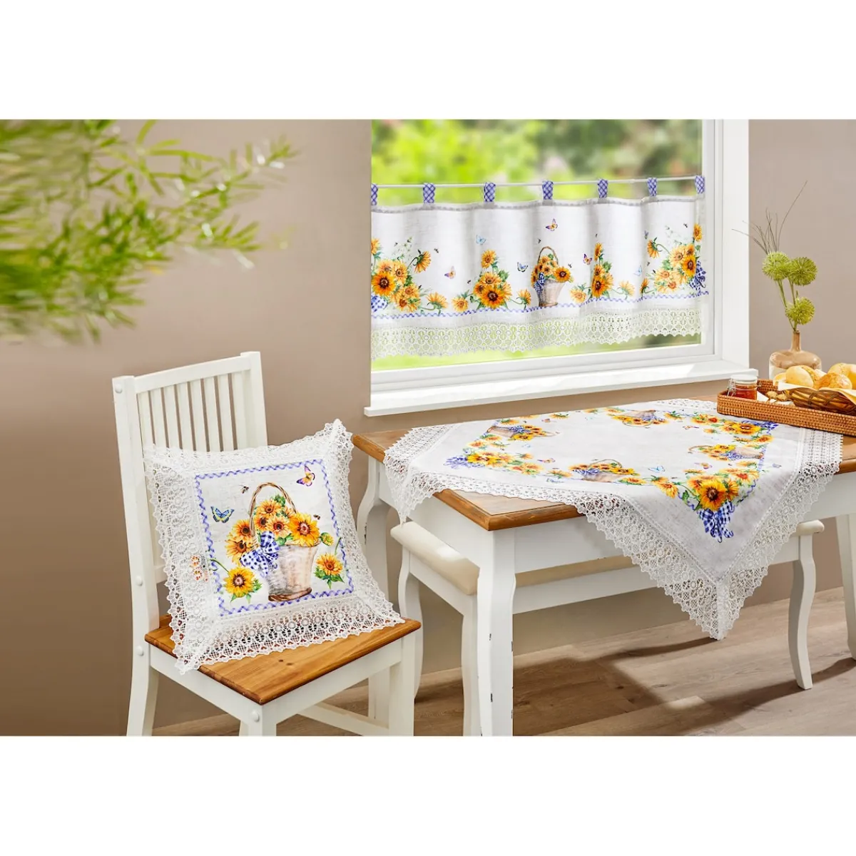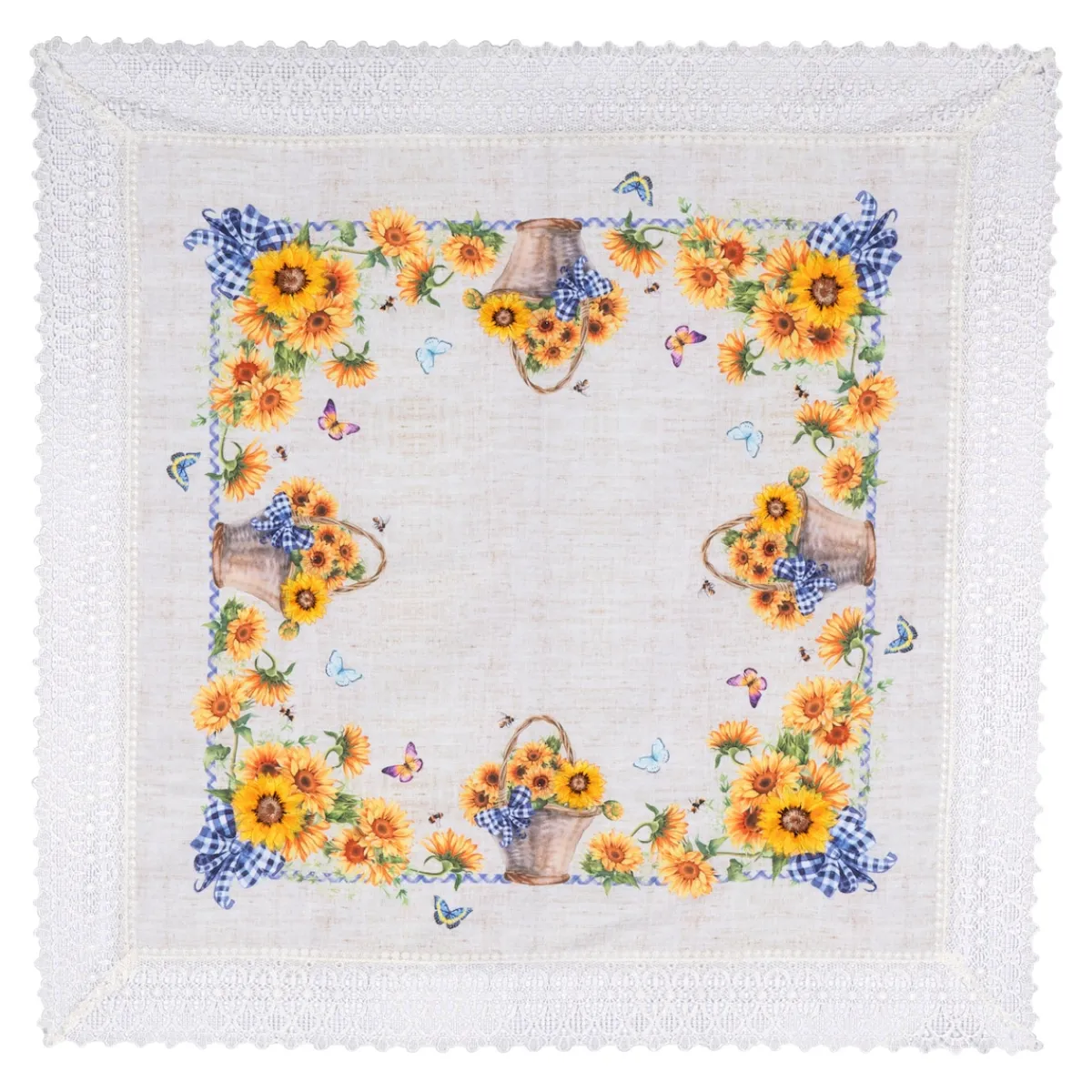 Diese teils gestickte Mitteldecke mit breiter Spitze bringt sommerlichen Charme auf Ihren Tisch. Die feine Stickerei und die elegante Spitze verleihen Ihrem Zuhause eine stilvolle Note. Perfekt für jede Gelegenheit!