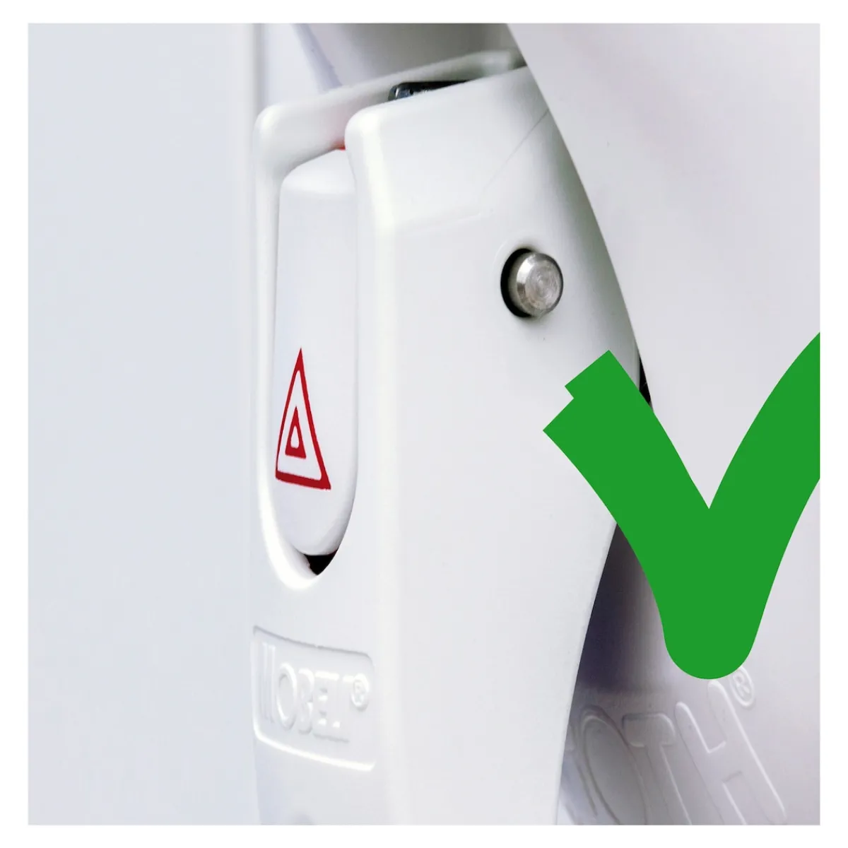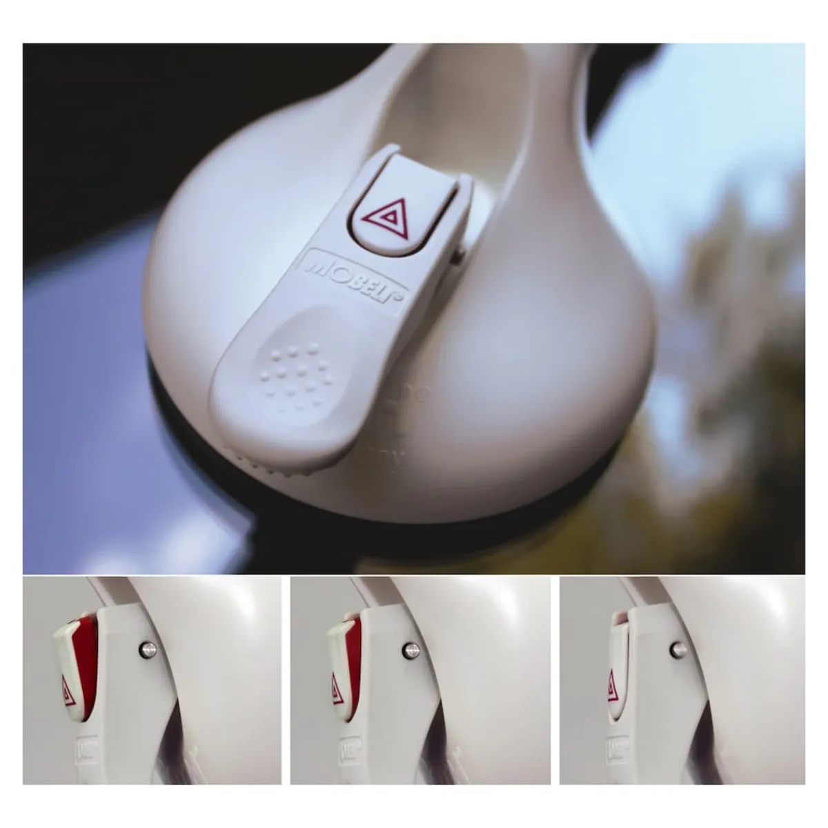 Ist die Warn-Wippe im Hebel versenkt, stimmt die Haftkraft und der Griff ist voll belastbar. Fährt die Warn-Wippe aus und der rote Wippenrand wird sichtbar, muss der Mobelisauger gelöst und erneut befestigt werden. Die extrem starken Vakuum-Teller sind schnell angebracht und auch wieder gelöst.