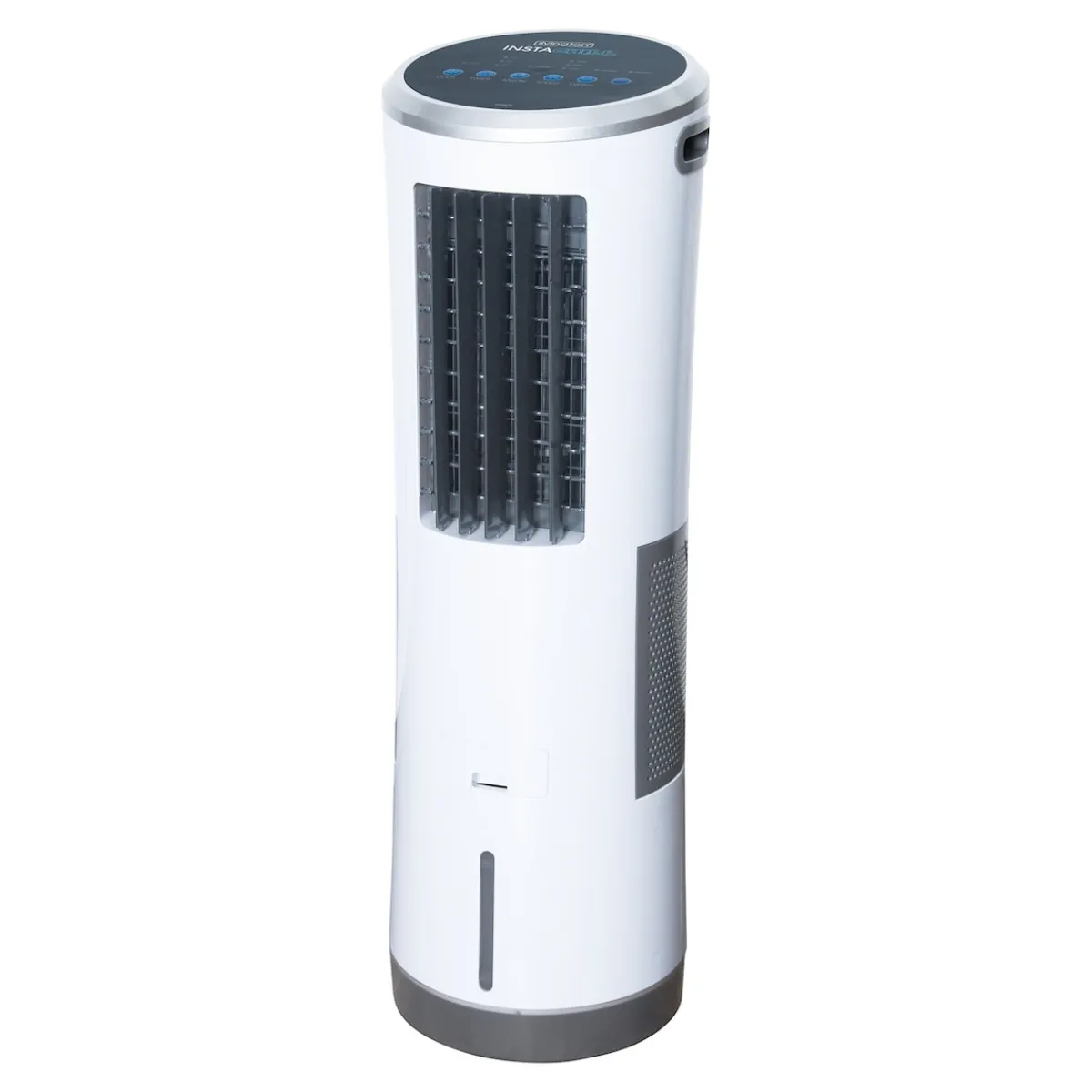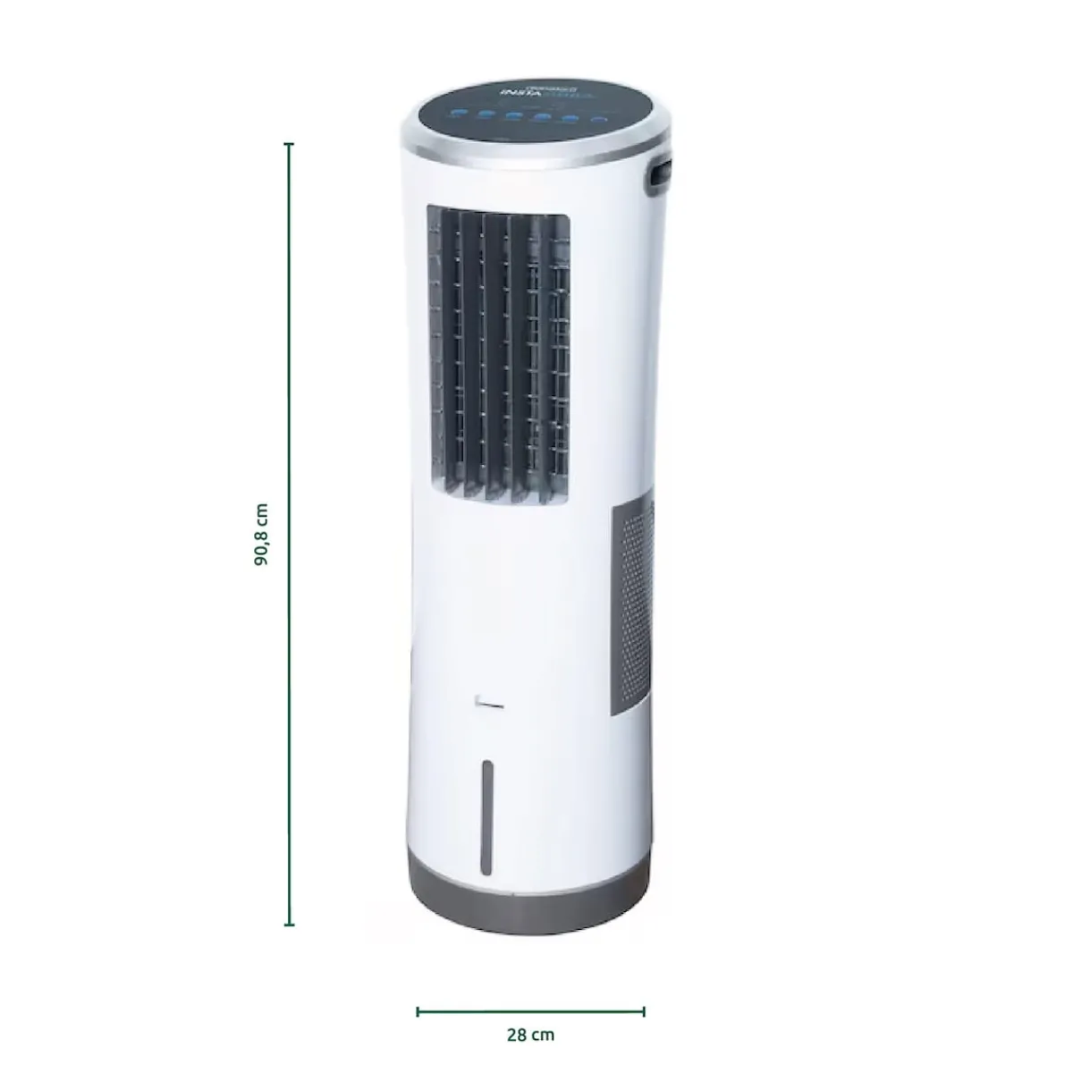 Am Kühltower selbst oder über die im Lieferumfang enthaltene Fernbedienung lassen sich je nach Wunsch drei verschiedene Geschwindigkeits- und Kühlstufen auswählen. Der integrierte Timer erweist sich als praktisch, wenn das InstaCHILL Kühlgerät zum Beispiel nachts im Schlafzimmer für Abkühlung sorgen und sich nach einiger Zeit selbst abschalten soll. Ebenso pfiffig ist die Swing-Funktion, mit der sich der Verdunstungskühler vollkommen automatisch hin und her bewegt. Auf diese Weise kann sich die erfrischende Brise gleichmäßig im gesamten Raum verteilen.