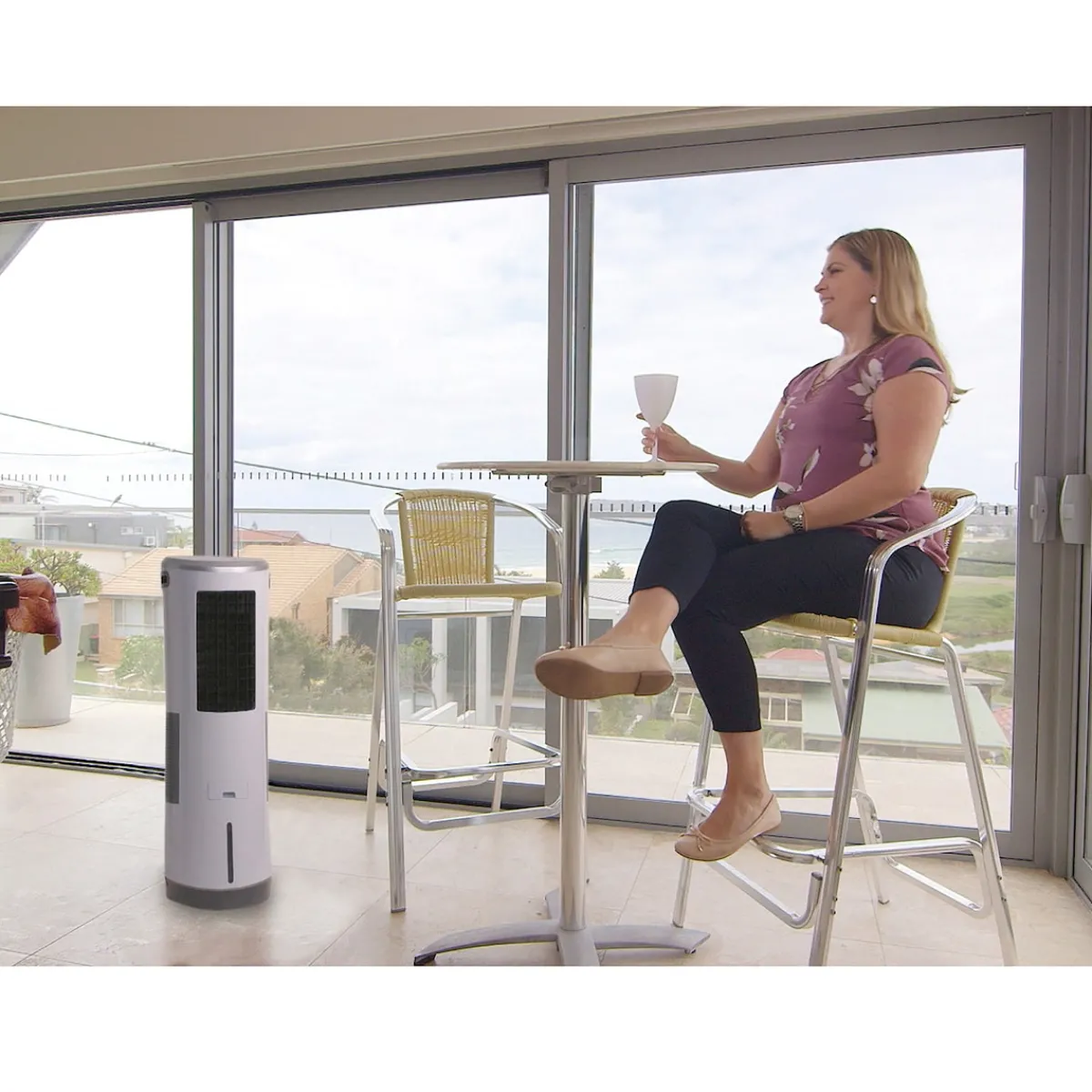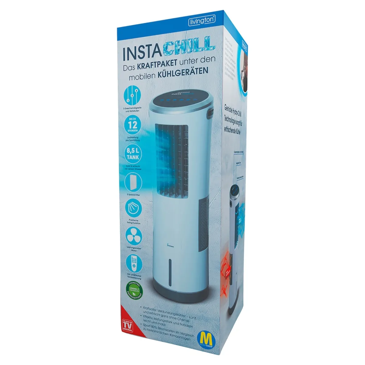 Wenn draußen die Temperaturen steigen, sorgt der Livington InstaCHILL Verdunstungskühler schnell und zuverlässig für Abkühlung. Und das ganz ohne Chemie oder schädliche Kühlmittel, nur mithilfe von Leitungswasser. Dank seiner Rollen und den handlichen Griffen ist der modern designte Kühltower flexibel und lässt sich an jedem gewünschten Ort aufstellen. Eine vorherige Montage ist nicht erforderlich. Lediglich der Wassertank muss vor dem Einschalten des Kühlgeräts aufgefüllt werden. Mit seinem großen Fassungsvermögen von bis zu 8,5 Litern sorgt er für bis zu 12 Stunden erfrischende Luft am Stück.