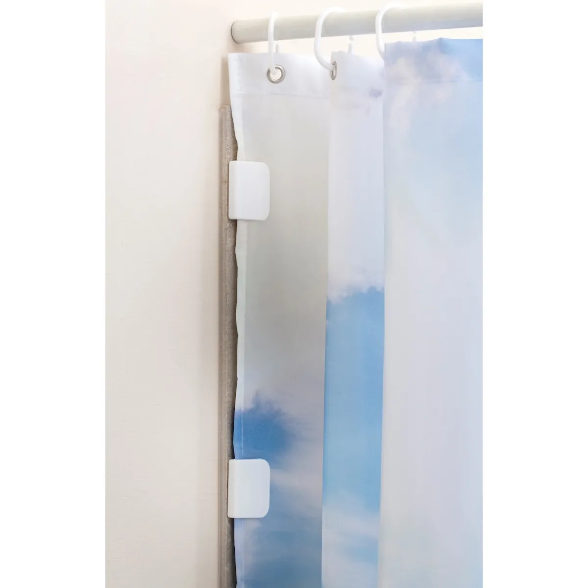 Funktional und praktisch: Klipps einfach mit den Klebepads an einer Wand festkleben und Ihren Duschvorhang einklemmen. So bleibt alles an Ort und Stelle und das Wasser spritzt nicht raus.