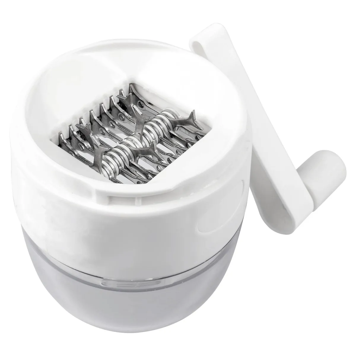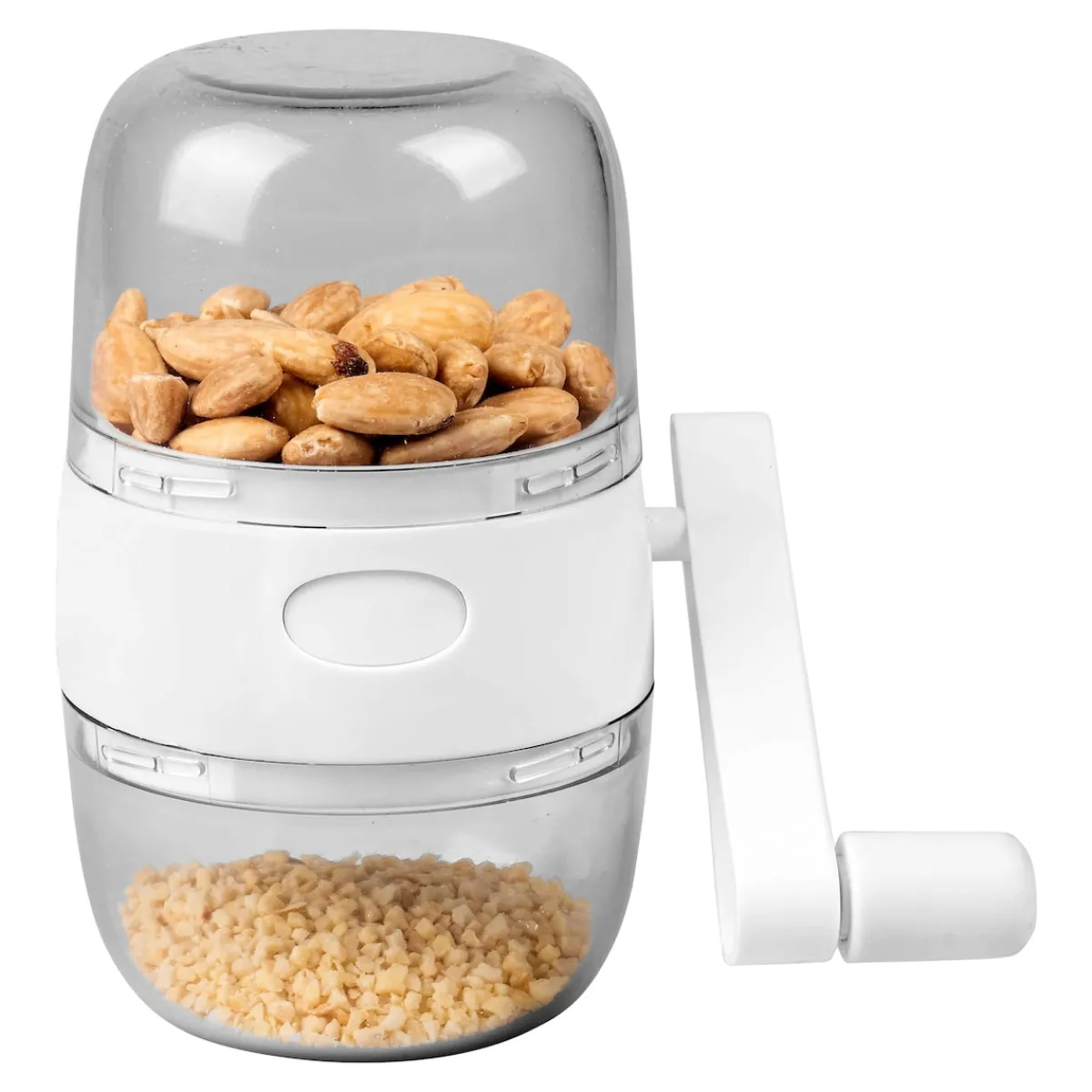 Einfach kurbeln und schon sind Wal- und Haselnüsse, Mandeln und Pistazien klein gehackt. Ob zum Backen oder Garnieren von Desserts – mit der praktischen Nuss-Mühle macht das Zerhacken Freude. Beide Behälter können auch als Schüsseln verwendet werden.