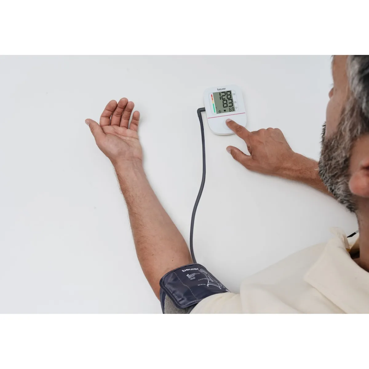 Das Oberarm-Blutdruckmessgerät BM 23 ermöglicht Ihnen eine komfortable und präzise Messung von Blutdruck und Puls – einfach per Knopfdruck. Die vollautomatische Funktion mit automatischer Druckvorwahl macht die Anwendung besonders leicht. Die Manschetten-Sitzkontrolle unterstützt Sie beim korrekten Anlegen, während die Arrhythmie-Erkennung auf mögliche Unregelmäßigkeiten hinweist. Mit der Scan & Save-Funktion speichern Sie Ihre Messwerte mühelos und behalten Ihre Ergebnisse jederzeit im Blick. Der farbige Risikoindikator erleichtert die Einordnung der Werte. Ein großes, gut ablesbares Display, der USB-C-Anschluss für Netzbetrieb sowie eine Manschette für Oberarmumfänge von 22 bis 42 cm runden die Ausstattung ab.