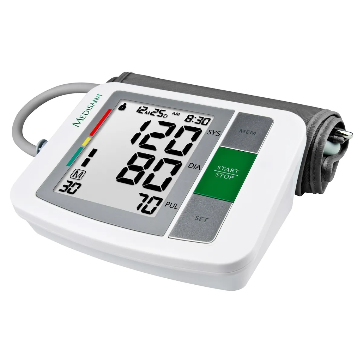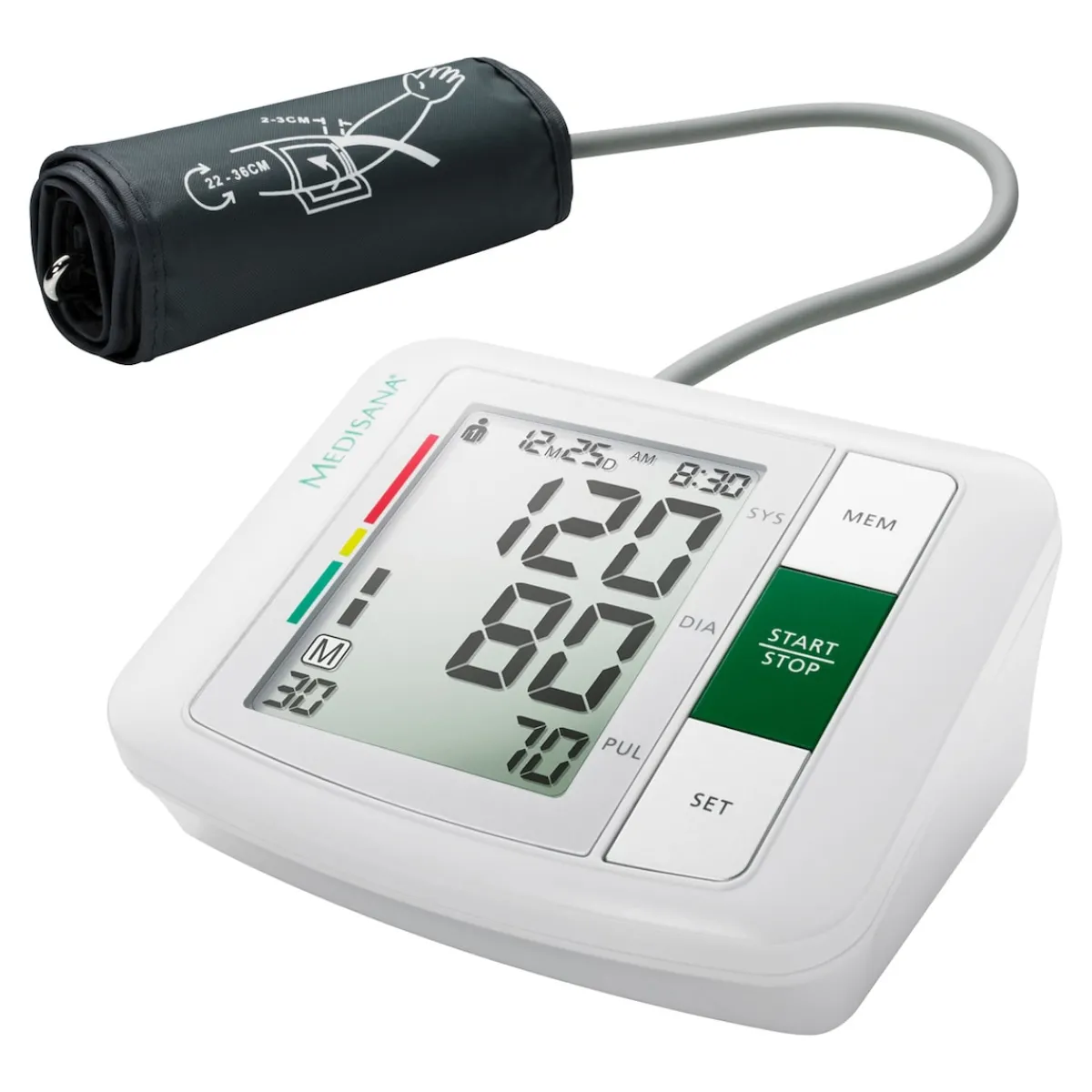 Für eine präzise Blutdruckmessung am Oberarm ist das Oberarm-Blutdruckmessgerät „BU 512“ ideal. Mit besonders großen Ziffern sind Systole, Diastole, Puls, Datum und Uhrzeit gut lesbar. Die Manschette passt sich einem Oberarmumfang von 22 bis 36 cm an. Das Gerät bietet 2×90 Speicherplätze und zeigt Durchschnittswerte aller gespeicherten Daten an. Die Messwerte werden gemäß WHO-Farbskala bewertet und eine Arrhythmie-Erkennung sorgt für zusätzliche Sicherheit. Das Gerät wird im praktischen Aufbewahrungsbeutel geliefert.