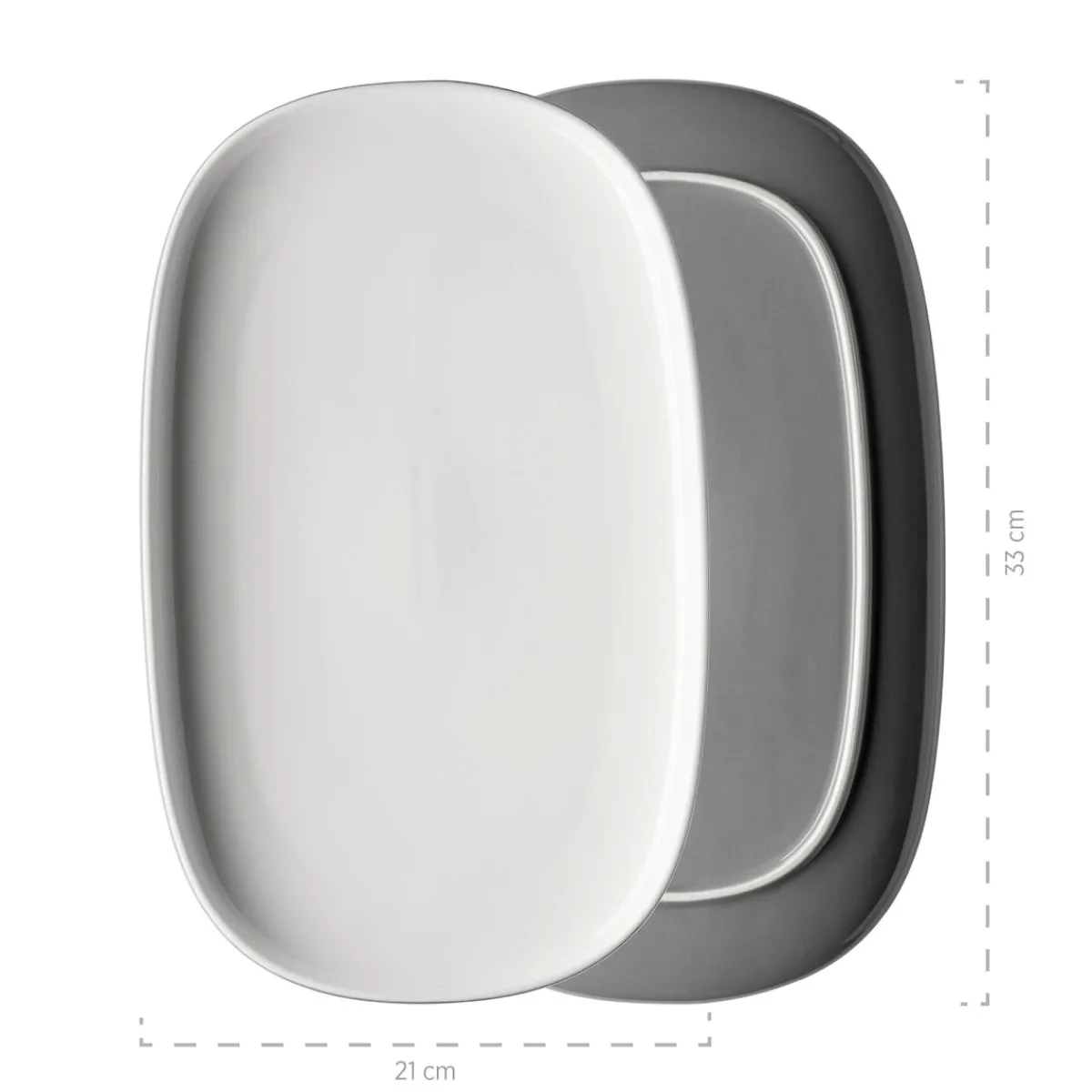 Mit ihrer abgerundeten quadratischen Formgebung präsentiert sich die Keramikgeschirr Kollektion „Isora“ der österreichischen Traditionsmarke MÄSER modern und zeitlos zugleich. Ein pfiffiges Detail der Farbvariante in glänzendem Schwarz ist die unglasierte Umrahmung der Teller und Servierplatten, welche die Spülmaschineneignung selbstverständlich nicht beeinträchtigen. Die Farbvariante in Grau-Weiß hingegen überzeugt mit ihrem sympathischen Kontrast zwischen weißer Innen- und grauer Außenglasur. Gefertigt aus hochwertigem und dickwandigem Steinzeug (nicht zu verwechseln mit dem deutlich poröseren Steingut) wird Ihnen dieses Set aus der Kollektion „Isora“ lange Freude bereiten. Alle Teile der Tafelgeschirr-Serie „Isora“ sind mikrowellen- und geschirrspülergeeignet und sind somit äußerst pflegeleicht. Dieses Set wird in einer vielfach auf Bruchsicherheit getesteten Transportverpackung aus ressourcenschonenden Materialien versendet. Bitte beachten Sie: Um eine objektive Vergleichbarkeit zu gewährleisten, gehen unsere Füllmengenangaben von einer randvollen Befüllung aus.