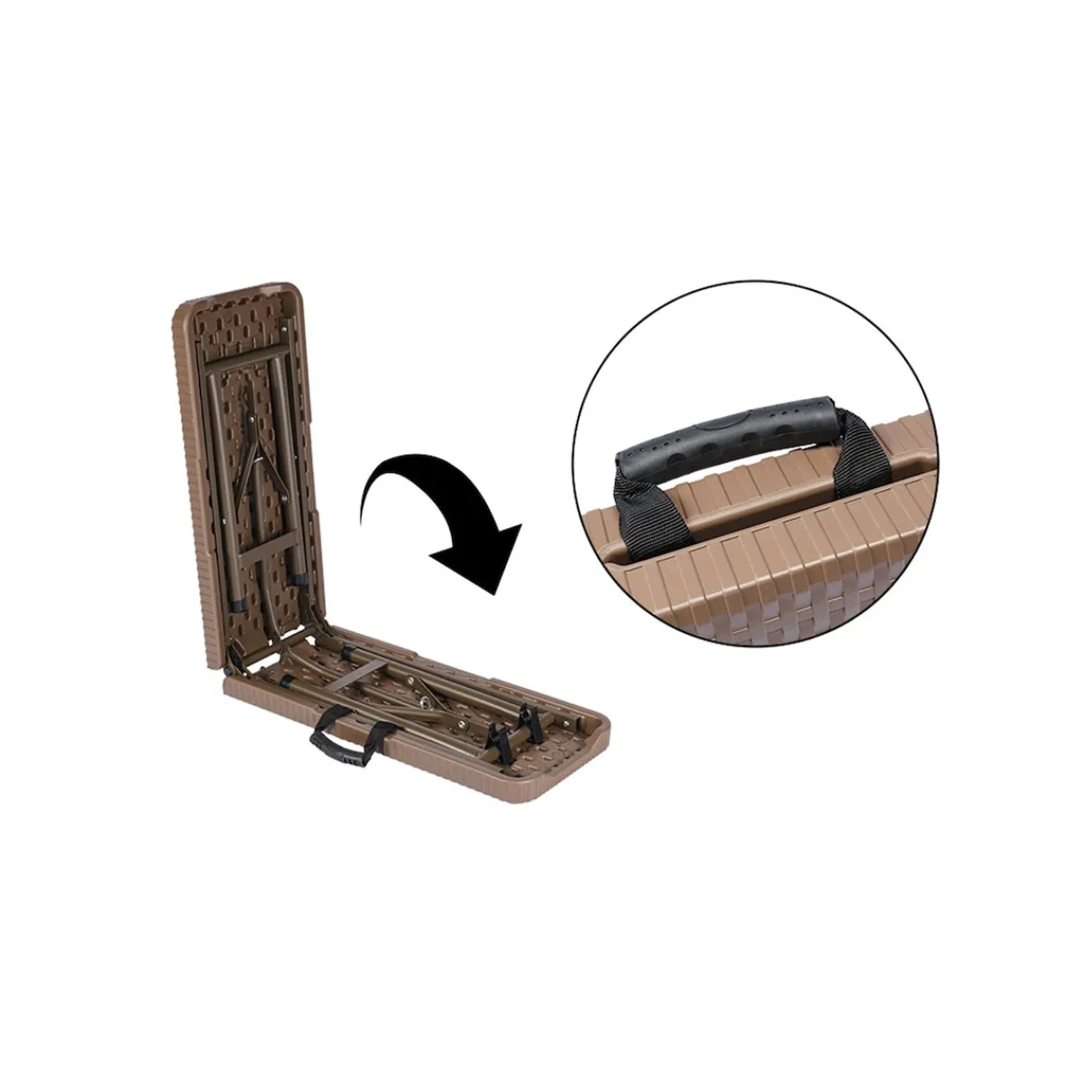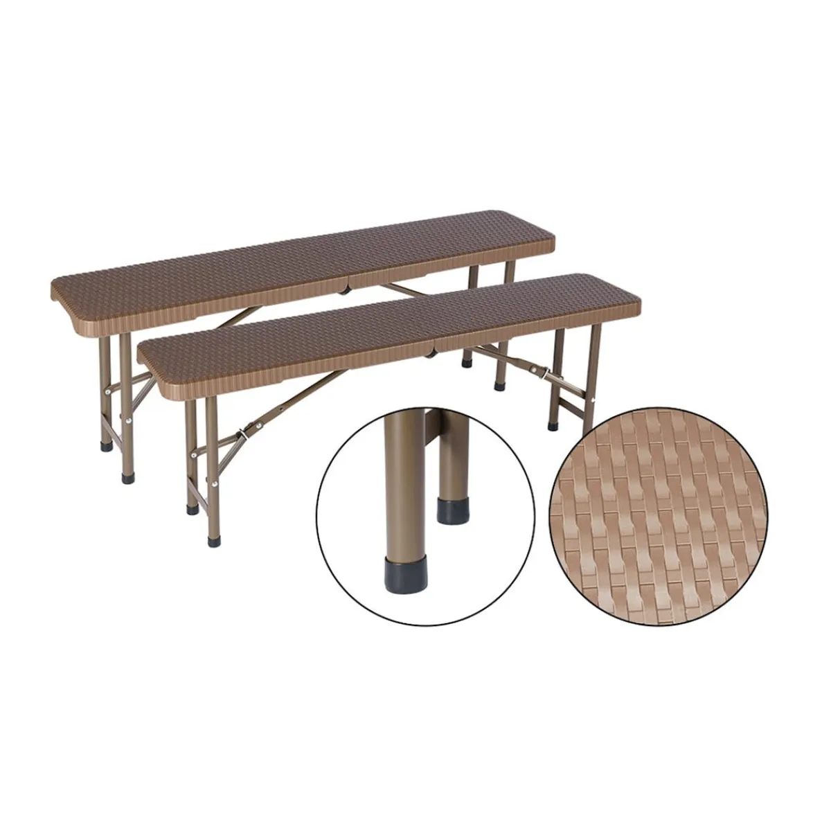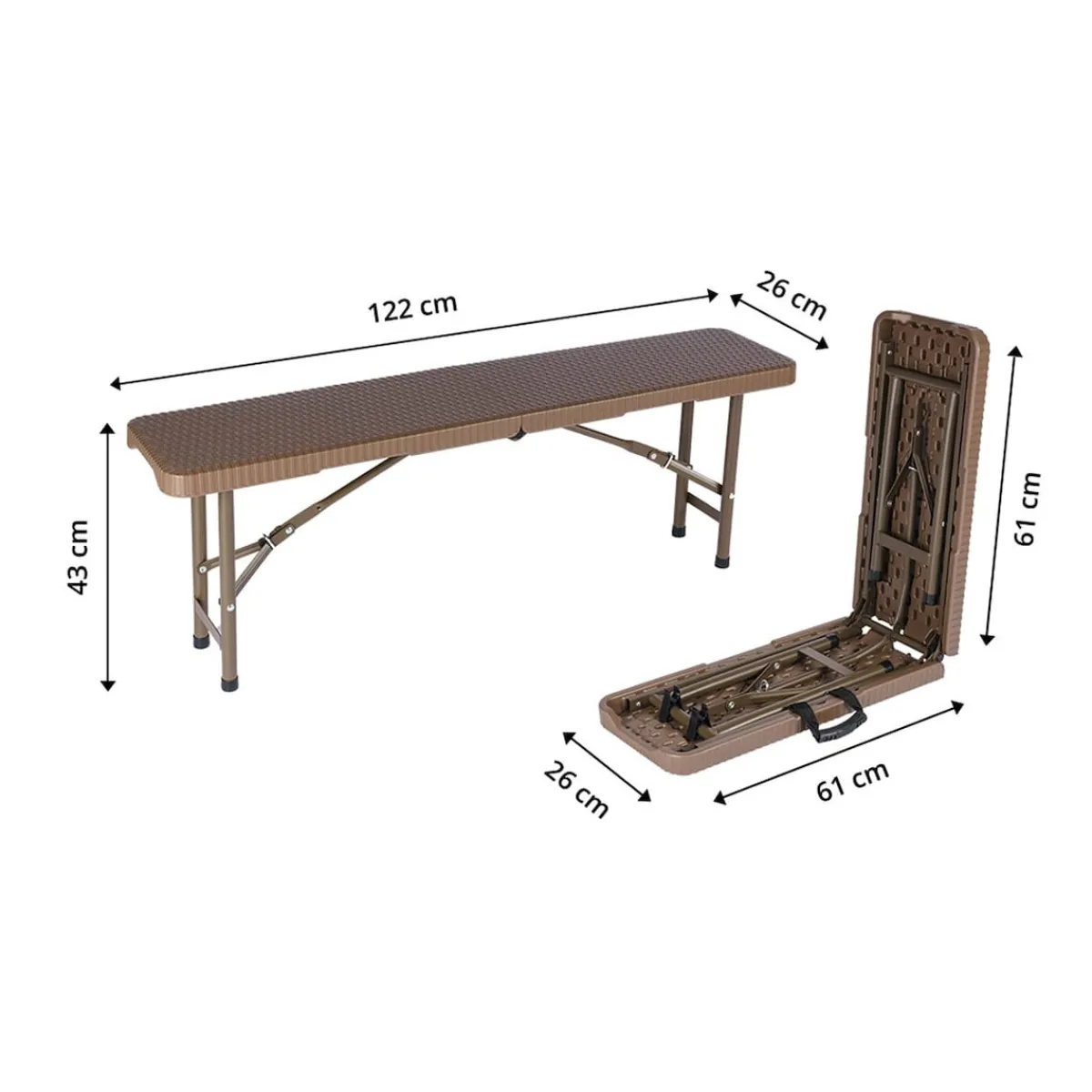 Praktisch: Diese Klappbank in Rattan-Optik ist immer genau dort zur Hand, wo Sie sie gerade benötigen – im Haushalt, im Campingurlaub oder bei der Grillparty. Bei Nichtgebrauch einfach zusammenklappen, am Griff transportieren und platzsparend in Nischen oder Schränken verstauen.