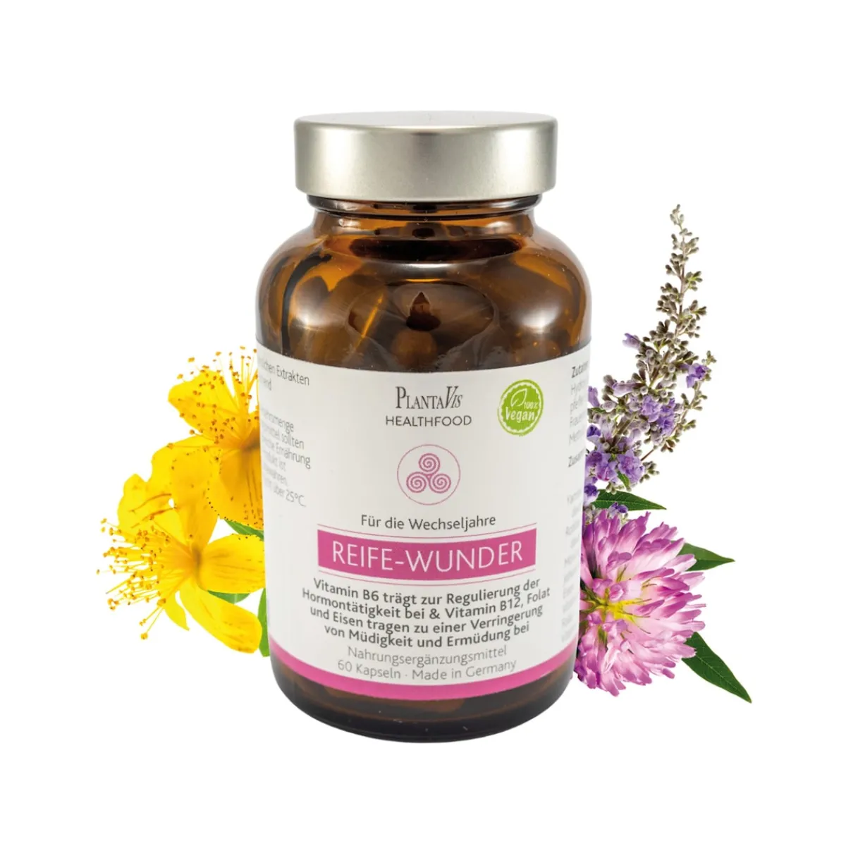 Das Reife-Wunder wurde speziell für die Wechseljahre konzipiert und enthält sorgfältig ausgewählte Pflanzen Extrakte, unter anderem aus Yamswurzel, Rotklee und Salbei. Dabei bauen wir auf das jahrhundertealte Wissen aus der natürlichen Frauenheilkunde.