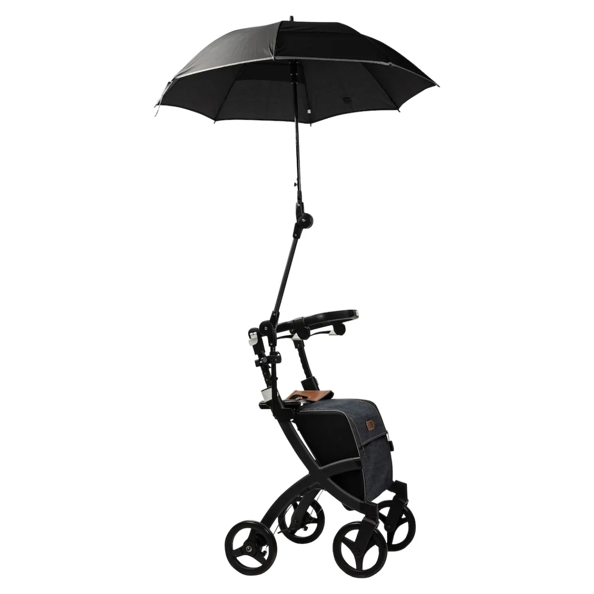 Der Rollator-Schirm besticht durch seinen großzügigen Durchmesser, der ausreichend Raum bietet. Zwei Knickgelenke am Schirmstock erlauben es, die Ausrichtung und Neigung des Schirms nach Ihren Bedürfnissen anzupassen und Sie beispielsweise vor Wind zu schützen. Die Höhe des Schirms ist ebenso individuell einstellbar, um maximalen Komfort zu gewährleisten.