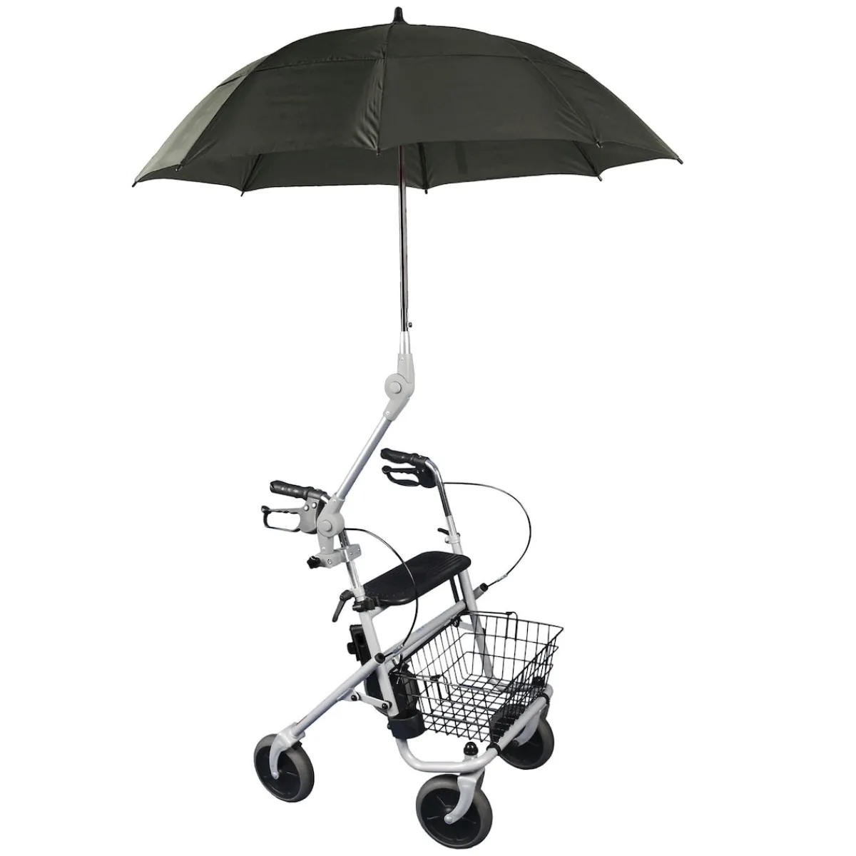 Windsicherer Schirm? Hier ist er! Der Schirm mit Adapter – passend auch für Ovalrohre – schützt vor Regen und Sonne, während der Rollator beidhändig geführt werden kann. Mit individueller Höheneinstellung und bedienungsfreundlicher Automatiköffnung. Auch für Rollstühle geeignet.