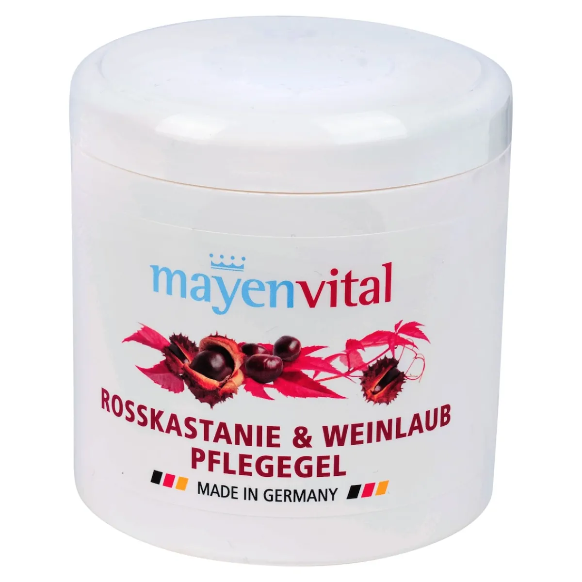 Das Rosskastanie & Weinlaub Pflege-Gel erfrischt und pflegt die Beine. Es ist zur Pflege müder, belasteter Beine geeignet und unterstützt den Erhalt gut durchbluteter Venen und Blutgefäße. Dafür sorgen die wertvollen Extrakte aus rotem Weinlaub und Rosskastanie, die pflegend und tonisierend wirken. Das Gel kühlt und erfrischt die Haut, hält sie glatt und geschmeidig und belebt die Beine. Dabei duftet das Pflege-Gel herrlich. Es lässt sich gut einmassieren und zieht rasch ein. Das hautfreundliche Rosskastanie & Weinlaub Pflege-Gel mit 500 Millilitern Inhalt enthält die folgenden Inhaltsstoffe:
