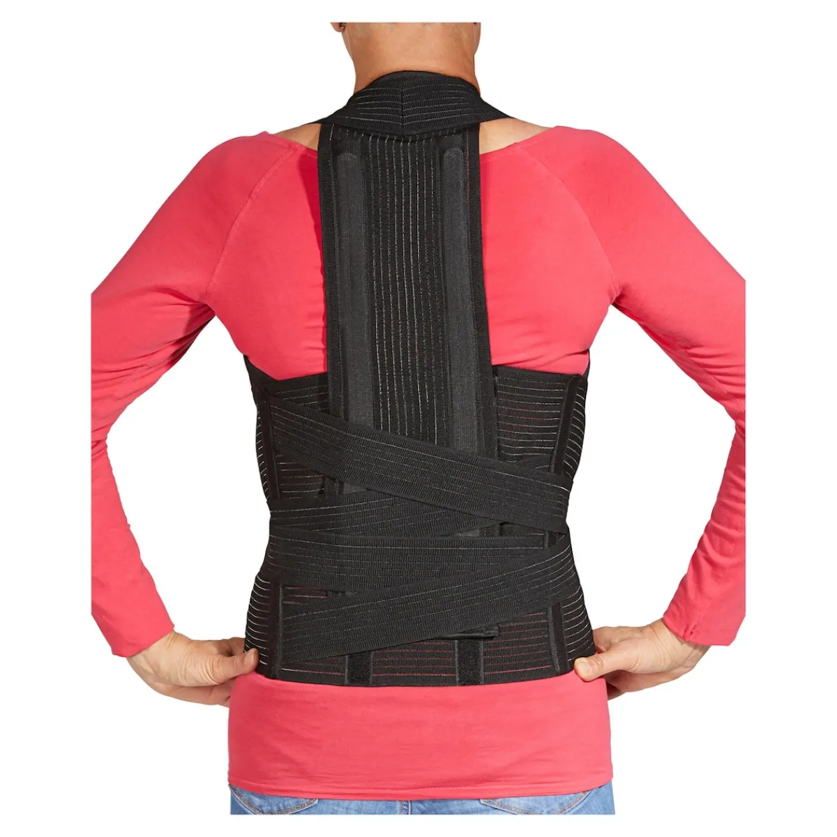 Empfohlen zur Stabilisierung und Stärkung der Wirbelsäule im Sakral-, Lenden- und Brustbereich. Ausgestattet mit 4 Längsstützen und flexiblen, orthopädischen Bändern, mit denen die Druckkraft individuell angepasst werden kann. Die Orthese besteht aus einer hohen Lenden-Kreuzbein-Orthese und einem mit Klettverschluss befestigten Rückenteil, das abgenommen werden kann, falls die Beschwerden abnehmen.