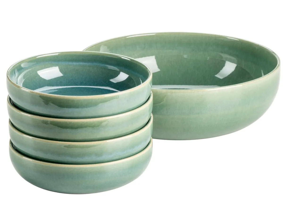Aufregende Naturfarbtöne in verschiedenen Farbwelten fließen auf der Keramikgeschirr-Kollektion „Elina Uno“ der österreichischen Traditionsmarke MÄSER ineinander und bilden auf jedem Teller, jeder Tasse und jeder Schale ein einzigartiges Muster aus, welches je nach Lichteinfall in unterschiedlichen Nuancen schimmert. Die besondere Glasurtechnik dieser außergewöhnlichen Essgeschirr-Serie macht jedes Teil zu einem echten Unikat. Die beiden Farbwelten Jungle und Beach lassen sich harmonisch miteinander kombinieren und bringen ein unvergleichliches tropisches Feeling auf Ihren Esstisch. Mit ihren großzügig-schlichten skandinavischen Formen bietet die Serie „Elina Uno“ viel Raum für Ihre kulinarischen Kreationen sowie für Dekoration.