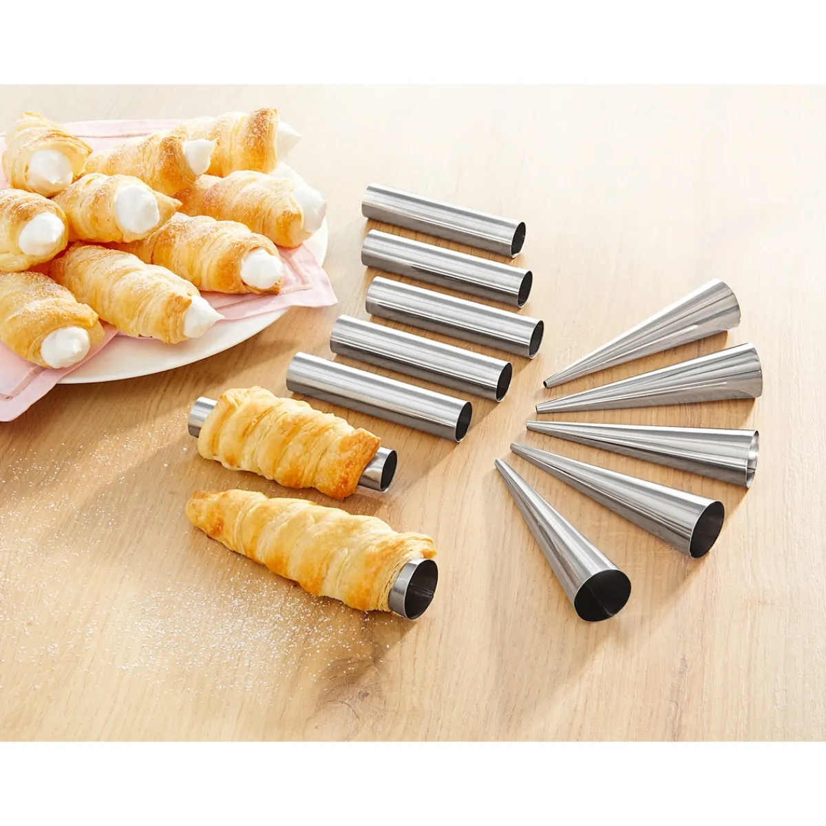 Zaubern Sie süße oder herzhafte Snacks wie ein Profi: Ob Schillerlocken, Cannoli oder Blätterteiggebäck – mit diesen unterschiedlich geformten Rollen geht das einfach und schnell.