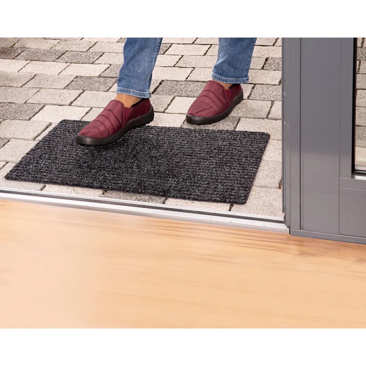 Besonders unempfindliche Fußmatte mit Doppelrippen für feinen und groben Schmutz. Leicht zu reinigen – einfach ausklopfen oder absaugen! Für den Innenund überdachten Außenbereich.
