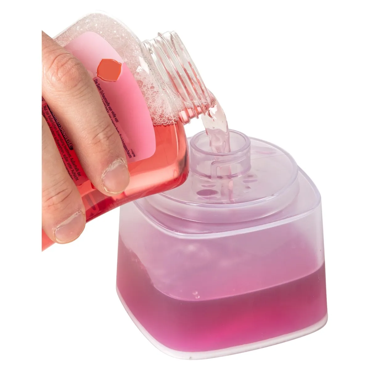 - mit Flüssigseife und Wasser befüllen