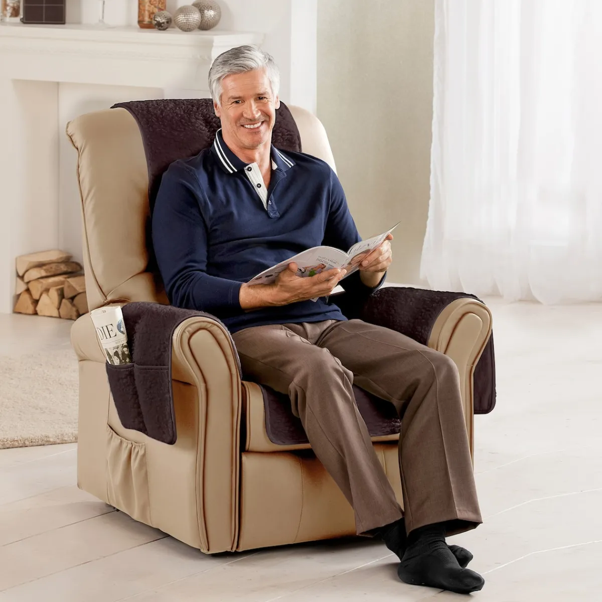 Unsere Schurwoll-Sesselschoner bieten ultimativen Komfort. Legen Sie sie einfach über Ihren Lieblingssessel, und das hochwertige Schurwollmaterial wärmt Sie sofort. Die integrierten seitlichen Taschen sind praktisch, um Brille und Fernbedienung griffbereit zu halten. Entspannen Sie sich in gemütlicher Wärme und genießen Sie Ihre Auszeit. Diese Sesselschoner sind nicht nur praktisch, sondern auch stilvoll und passen perfekt zu jedem Einrichtungsstil. Gönnen Sie sich den Luxus von Schurwolle und steigern Sie Ihr Wohlbefinden. Ihre Sessel werden dankbar sein und Ihre Entspannungsmomente noch angenehmer gestalten.