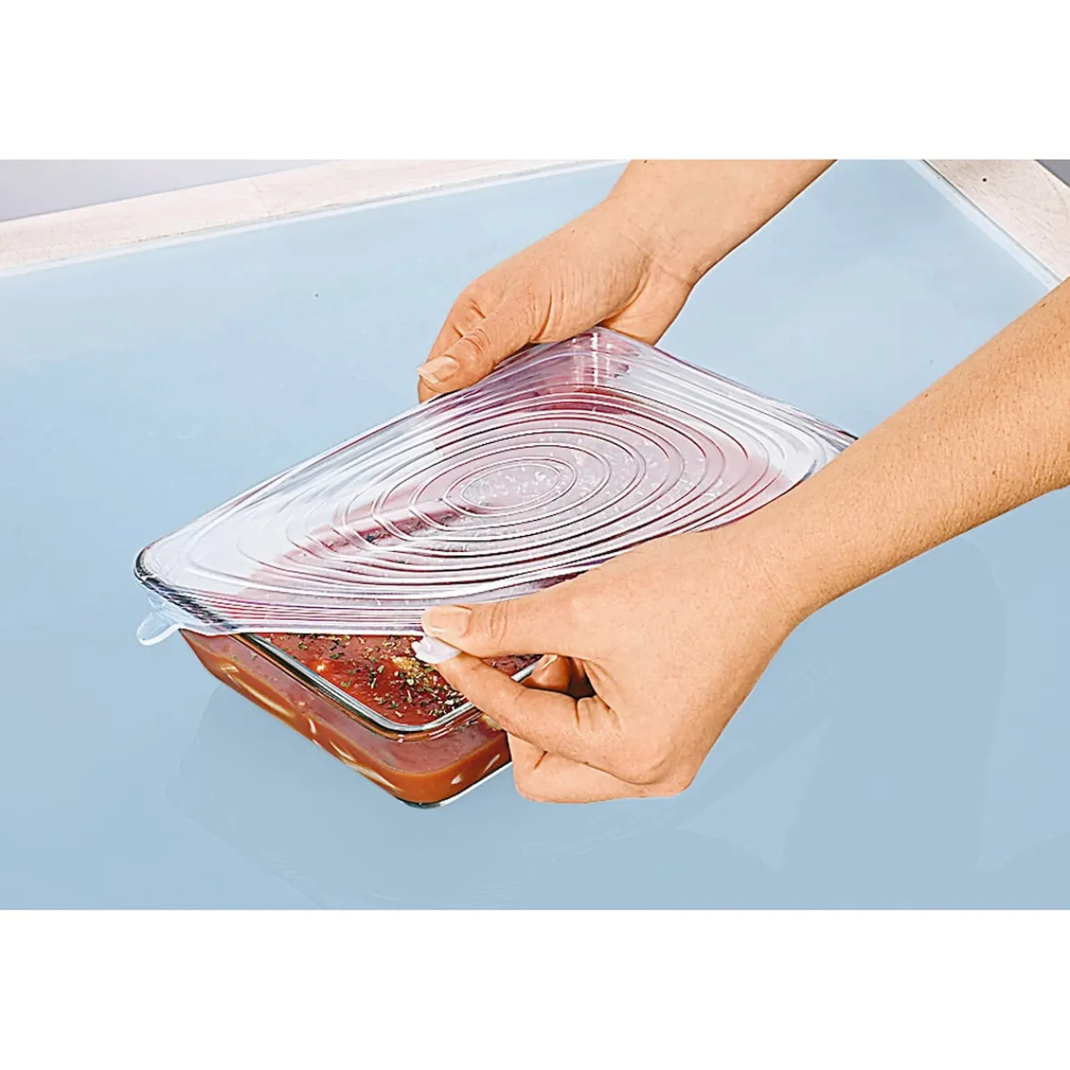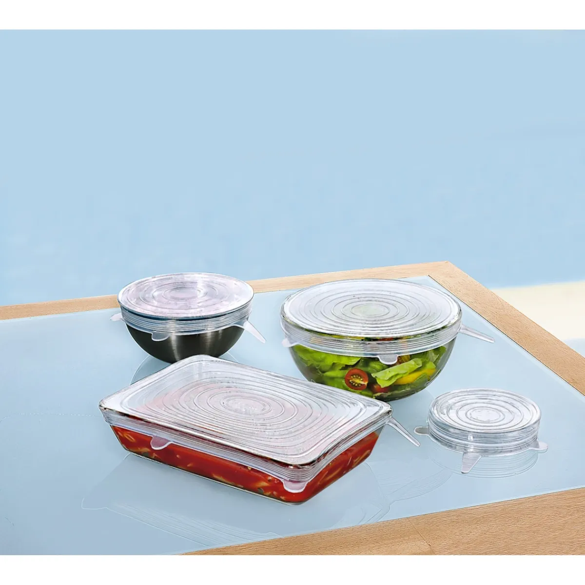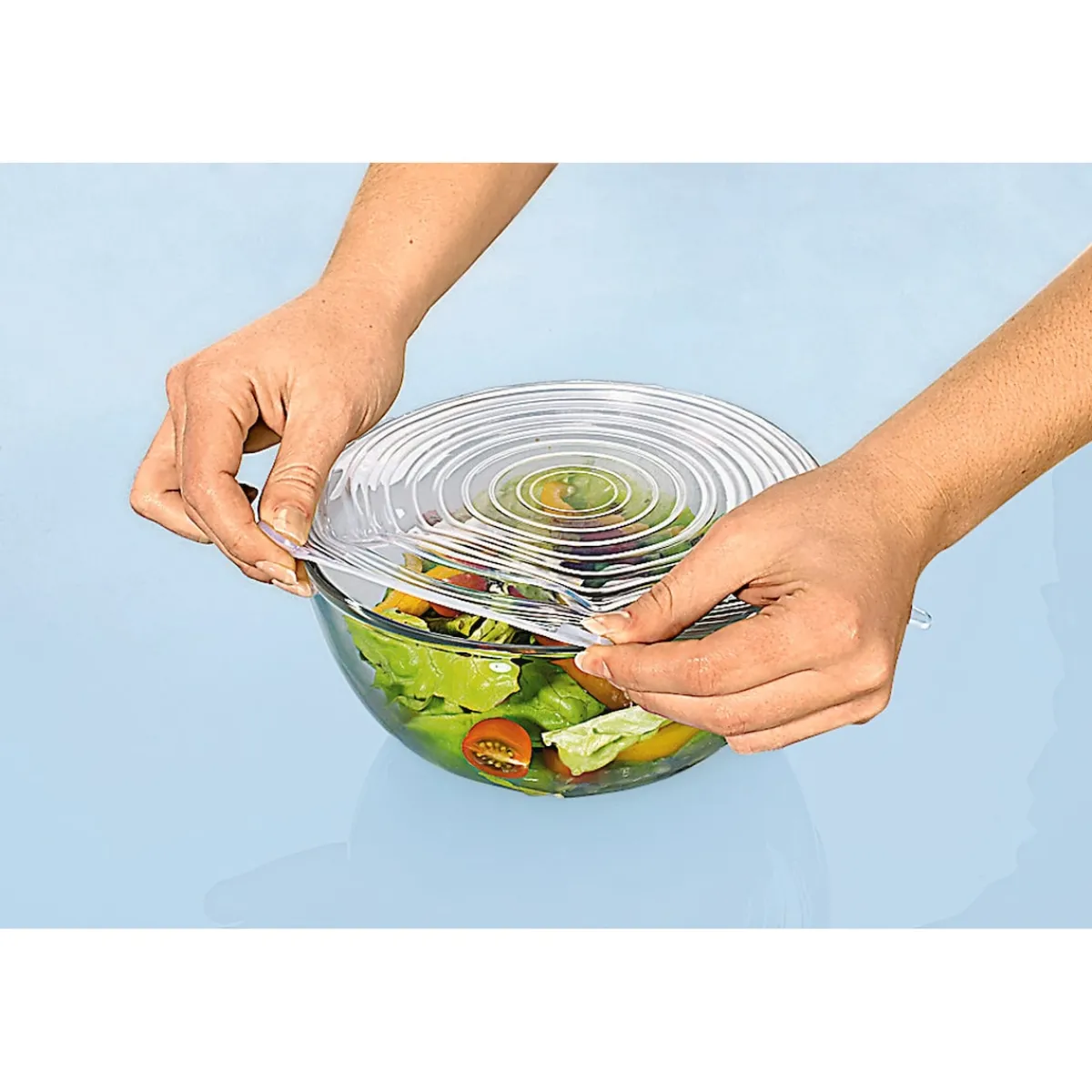 Die cleveren Silikon-Flexi-Deckel dürfen in keinem Haushalt fehlen! Die 6 variablen Größen passen auf jegliche Art von Schüsseln oder Töpfen und halten Ihre Lebensmittel frisch und aromatisch.