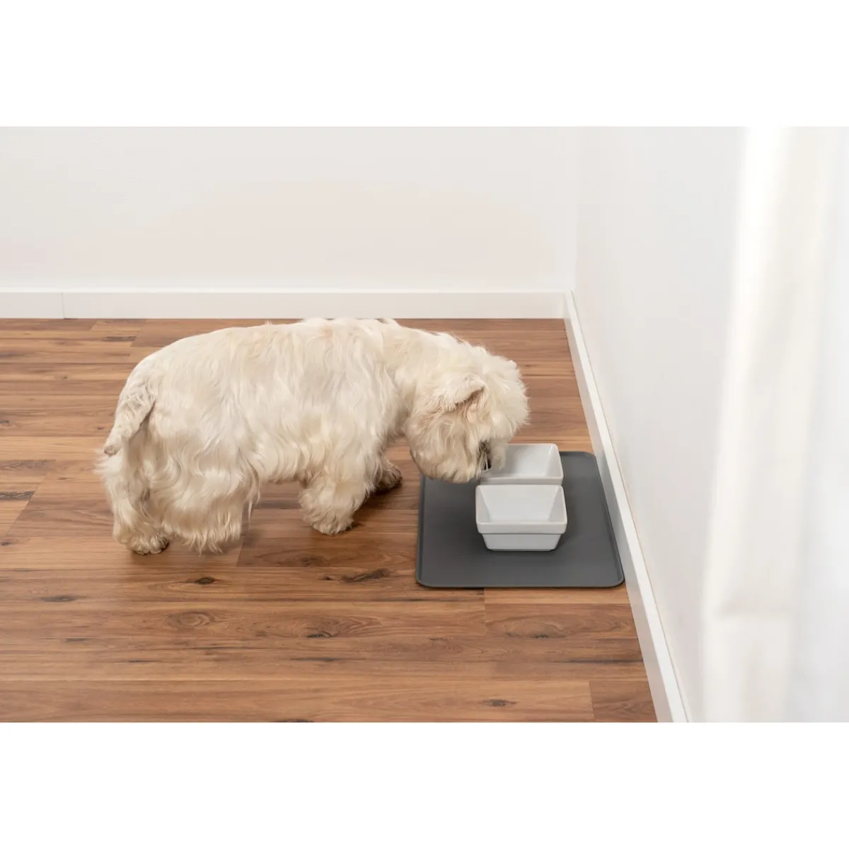 Damit alles rundum den Napf sauber bleibt, ist diese Silikon-Napfunterlage die erste Wahl! Die großflächige Matte mit erhöhtem Rand schützt den Boden vor Verschmutzungen und vor Überschwemmungen durch den Futter- und Wassernapf. Zusätzlich verhindert sie ein Verrutschen der Näpfe. Hygienisch und robust: pflegeleichtes, abwischbares Material.