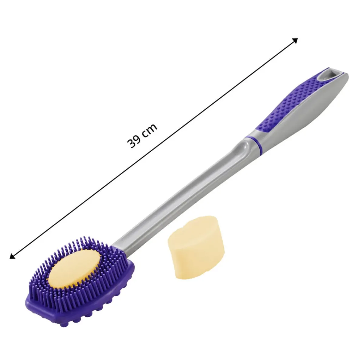 - Rückseite mit Schwämmchen zum Einseifen und Eincremen
