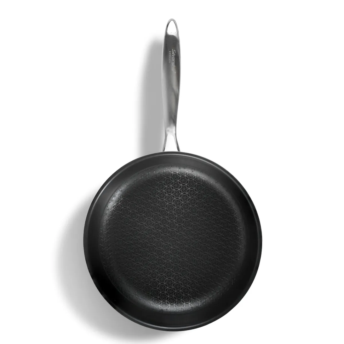 Silverstar Unzerstörbar! Patentiert! Professionell! Wenn es um die Pfanne für das perfekte Steak geht, ist das die erste Wahl: Die Profi Edelstahl Pfanne von Silverstar! Die patentierte Pfanne vereint die besten Eigenschaften einer Edelstahlpfanne mit denen einer Antihaftpfanne. Wie das funktioniert? Der Pfannenkörper besteht aus dem Dreischicht-Material „Edelstahl – Aluminiumkern – Edelstahl“. Diese Materialkombination gewährleistet eine schnelle Erhitzung des Kochgeschirrs sowie eine perfekte und gleichmäßige Wärmeverteilung vom Pfannenboden bis zum Rand. Im letzten Produktionsschritt wird die Pfanne antihaftversiegelt. Es handelt sich dabei um eine 100 % unzerstörbare Innenboden-Beschichtung, die selbst Küchenhelfern aus Metall standhält. Grund dafür ist die spezielle Silverstar Antihaftbeschichtung mit erhöht gelegener Sterne-Struktur aus Edelstahl. Die filigrane Struktur bewirkt, dass Sie Ihr Steak oder Grillgemüse scharf und bei hohen Temperaturen wie in einer klassischen Edelstahlpfanne anbraten können. Gleichzeitig lässt die Antihaftversiegelung die Speisen leicht aus dem Kochgeschirr lösen. Ein punktgenaues und gleichmäßiges Bratergebnis ist damit garantiert. Durch die Sterne-Struktur ist die Pfanne außerdem unempfindlich gegen Kratzer und Abrieb. Die Pfannen sind bis zum Schüttrand antihaftbeschichtet, was ein einfaches Herausgleiten der Speisen auf den Teller garantiert. Die antihaftversiegelten Silverstar Edelstahlpfannen sind für alle Herdarten geeignet und können selbstverständlich auch auf Herden mit Induktion verwendet werden. Im Backofen hält das Material Temperaturen bis 220 °C stand. Also ab mit der Pfanne und dem gebratenen Gemüse in den Backofen zum Gratinieren. Hmmm … Und die Reinigung? Ist genauso unkompliziert wie die Handhabung, denn hier kommen die Vorzüge der Antihaftpfanne erneut zum Vorschein: die Pfanne einfach mit heißem Wasser, einem milden Spülmittel und einem weichen Schwamm auswischen. Das war’s! Mit dem im Lieferumfang enthaltenen Mikrofasertuch können Sie Ihre Pfanne wieder auf Hochglanz bringen. 1 Bratpfanne, ø ca. 28 cm, Höhe: ca. 5,5 cm, ca. 2,5 l 1 Mikrofasertuch Die wichtigsten Vorteile auf einen Blick: Patentierte Edelstahlpfanne mit 100 % unzerstörbarer Innenbeschichtung dank Antihaftversiegelung mit Sterne-Struktur aus Edelstahl Robuster Pfannenkörper aus Dreischicht-Materialkombination Harte, kratzfeste und resistente Innenbeschichtung mit sehr langer Lebensdauer Ideal zum scharfen Anbraten, Kochen, Braten, Gratinieren, Backen Inklusive Mikrofasertuch für ein glänzendes Finish Leichte Reinigung dank Antihaftversiegelung Extra starker, verzugsfreier Boden Bodenstärke: 2,8 mm Für alle Herdarten geeignet, auch Induktion Backofengeeignet bis 220 °C Material: 3-Schicht-Kombination aus „Edelstahl, Aluminiumkern, Edelstahl“ mit Antihaftversiegelung Reinigungs- und Pflegetipps: Vor dem ersten und nach jedem Gebrauch empfehlen wir, Ihr Koch- oder Backgeschirr mit etwas Wasser und einem milden Spülmittel gründlich auszuwaschen. Achten Sie dabei darauf, dass der Artikel ausreichend abgekühlt ist, bevor Sie mit der Reinigung beginnen. Nicht mit kaltem Wasser abschrecken. Dank der Antihaftwirkung wird die Reinigung per Hand empfohlen.