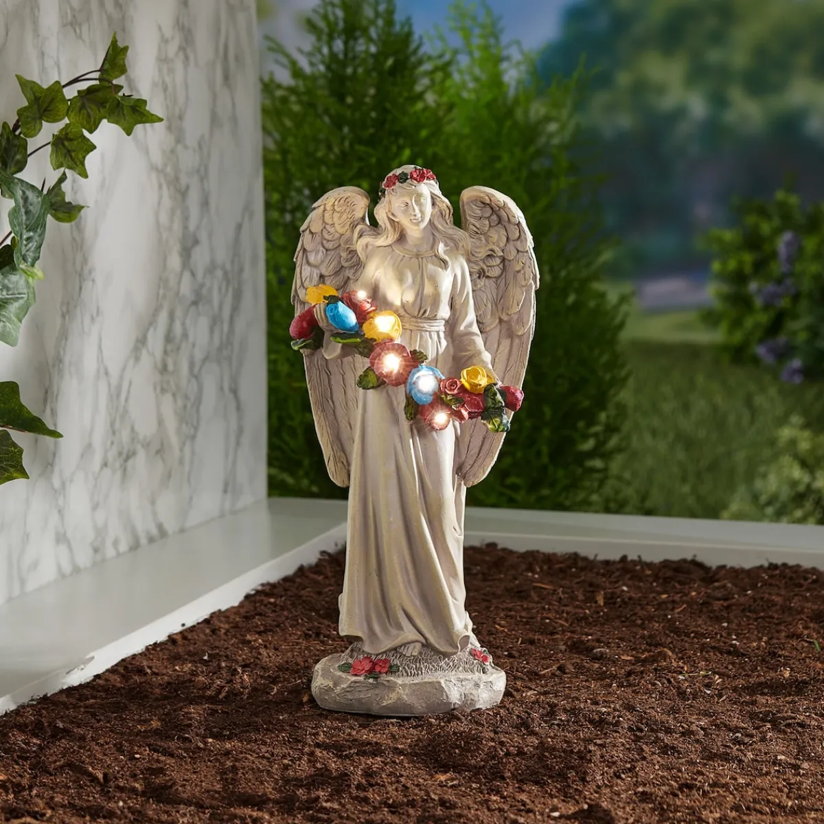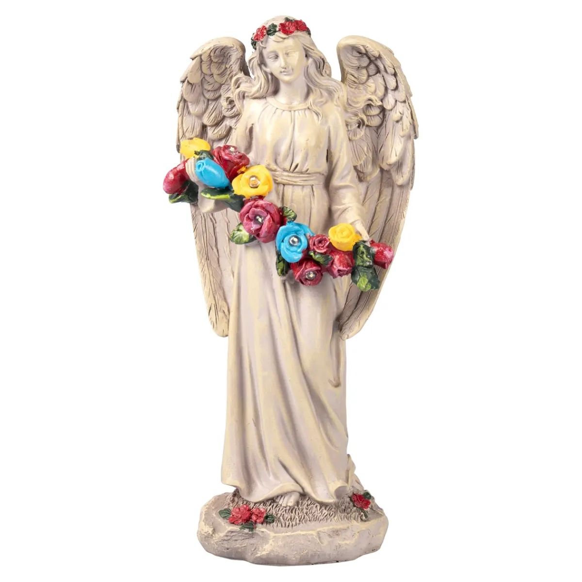 In dieser filigran gestalteten Engelsfigur finden Sie Trost, während sie schützend über das Grab eines geliebten Menschen wacht. Bei Dunkelheit beginnen die Rosen für Ihre Liebsten zu leuchten und symbolisieren Ihre Liebe über den Tod hinaus.
