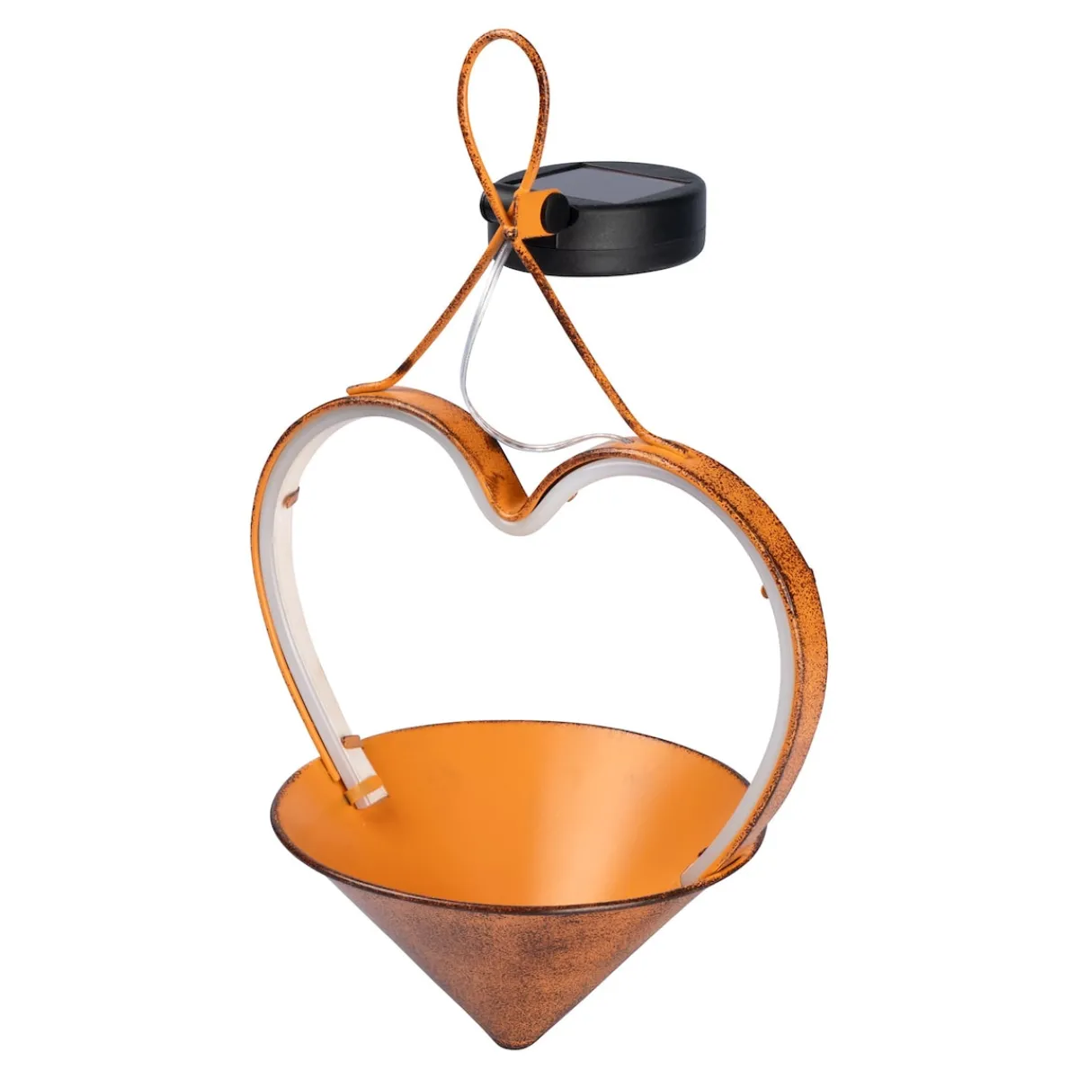 Diese Solar-Hängeleuchte bringt nostalgischen Charme in Ihren Außenbereich! Die stilvolle Rost-Optik verleiht Ihrem Garten, Balkon oder Eingangsbereich eine besonders einladende Note. Ein Highlight: Die Spitze kann individuell mit Blumen, Dekosteinen oder anderen Lieblingsstücken befüllt werden. Bei Einbruch der Dämmerung sorgt die integrierte Solarbeleuchtung für ein stimmungsvolles Licht, das Ihre persönliche Gestaltung effektvoll in Szene setzt.