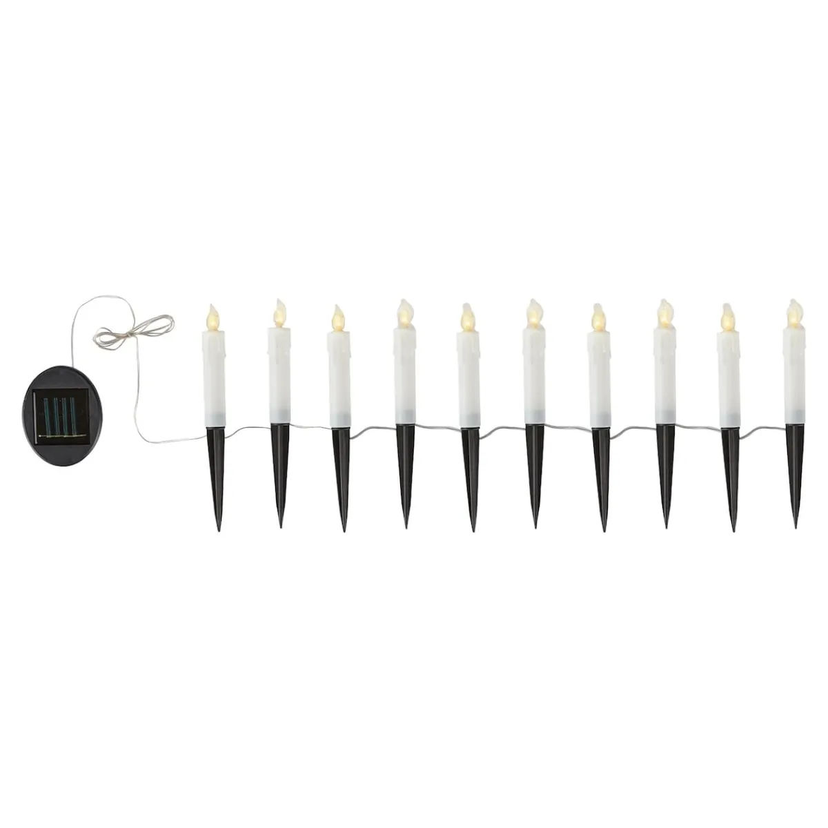 Festlicher Glanz erstrahlt mit warmweißem Licht, sobald diese Solar-Kerzen am Fenster, im Eingangsbereich oder auf der Terrasse die behagliche Weihnachtsbeleuchtung übernehmen! Diese Schmuckstücke sorgen mit ihrem edlen klassischen Design für den himmlischen Hauch von Luxus! Ganz praktisch mit Erdspieß zu befestigen. Mit Ein-/Ausschalter. 1,2V, 600mAH.