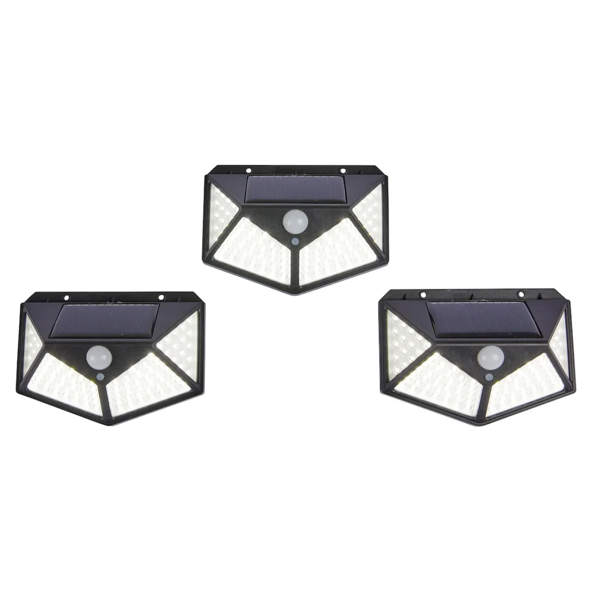 Dieser Solar-Sicherheitsstrahler reagiert auf jede Bewegung. Das sorgt für mehr Trittsicherheit im Dunkeln und hält Einbrecher und Tiere fern. Extra große Leuchtfläche mit insgesamt 100 superhellen LEDs. Inklusive Befestigungsmaterial.