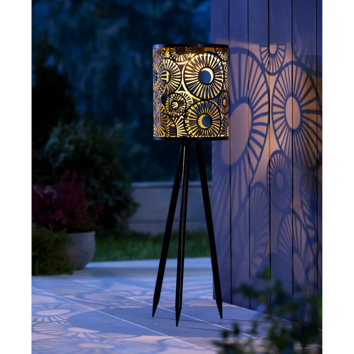 In der Optik wie eine edle Wohnraumleuchte überstrahlt diese Outdoor-Schönheit laue Sommerabende! Die tagsüber eingefangenen Sonnenstrahlen verwandelt sie dank ausgestanzten Ornamenten in ein faszinierendes Schattenspiel.