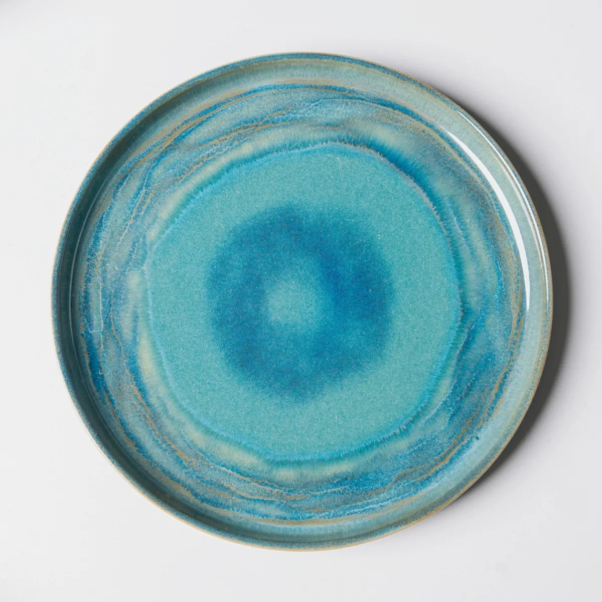 Wohl in jeder Alpenregion gibt es ihn: Den tiefen See, um den sich Legenden ranken. Der zum Baden meist zu kalt ist. Der Ruhe ausstrahlt und zum Verweilen einlädt. Die facettenreiche Kollektion Tiefer See mit ihren ineinanderfließenden Farbnuancen ist eine Hommage an diesen ganz besonderen Ort. An ihren Rändern spiegeln sich die umgebenden Berge auf einer sich kräuselnden Wasseroberfläche. Ihre beinahe dreidimensional erscheinende Mitte bringt die Kraft der Tiefe und Stille auf den Esstisch.