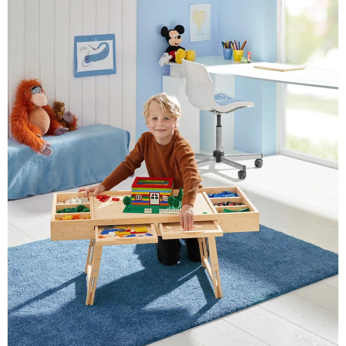 - Beine einklappbar & höhenverstellbar– ideal zum Spielen auf dem Boden oder Esstisch