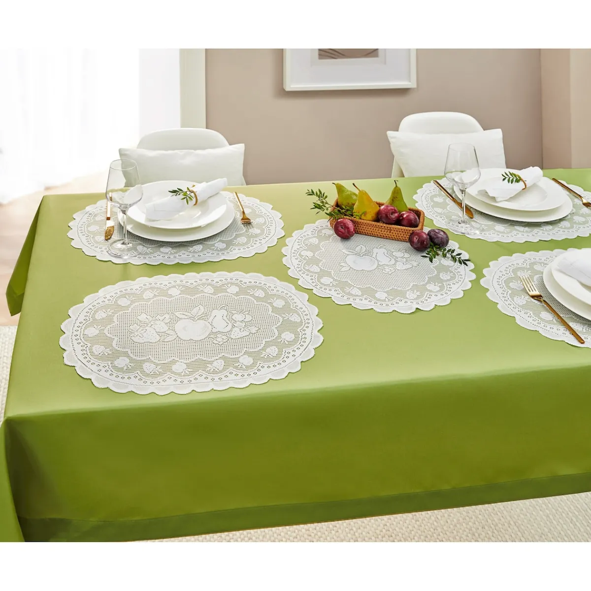 Mit seinem charmanten Früchte-Dekor und der kunstvoll gearbeiteten Spitzenumrandung ist dieses Deckchen ein stilvoller Blickfang für jeden Raum. Es eignet sich ideal für Tische, Kommoden oder Fensterbänke und bringt mit seiner farbenfrohen Gestaltung ein Stück Natur ins Haus. Gleichzeitig bleibt es durch seine pflegeleichte Verarbeitung besonders praktisch im Alltag.