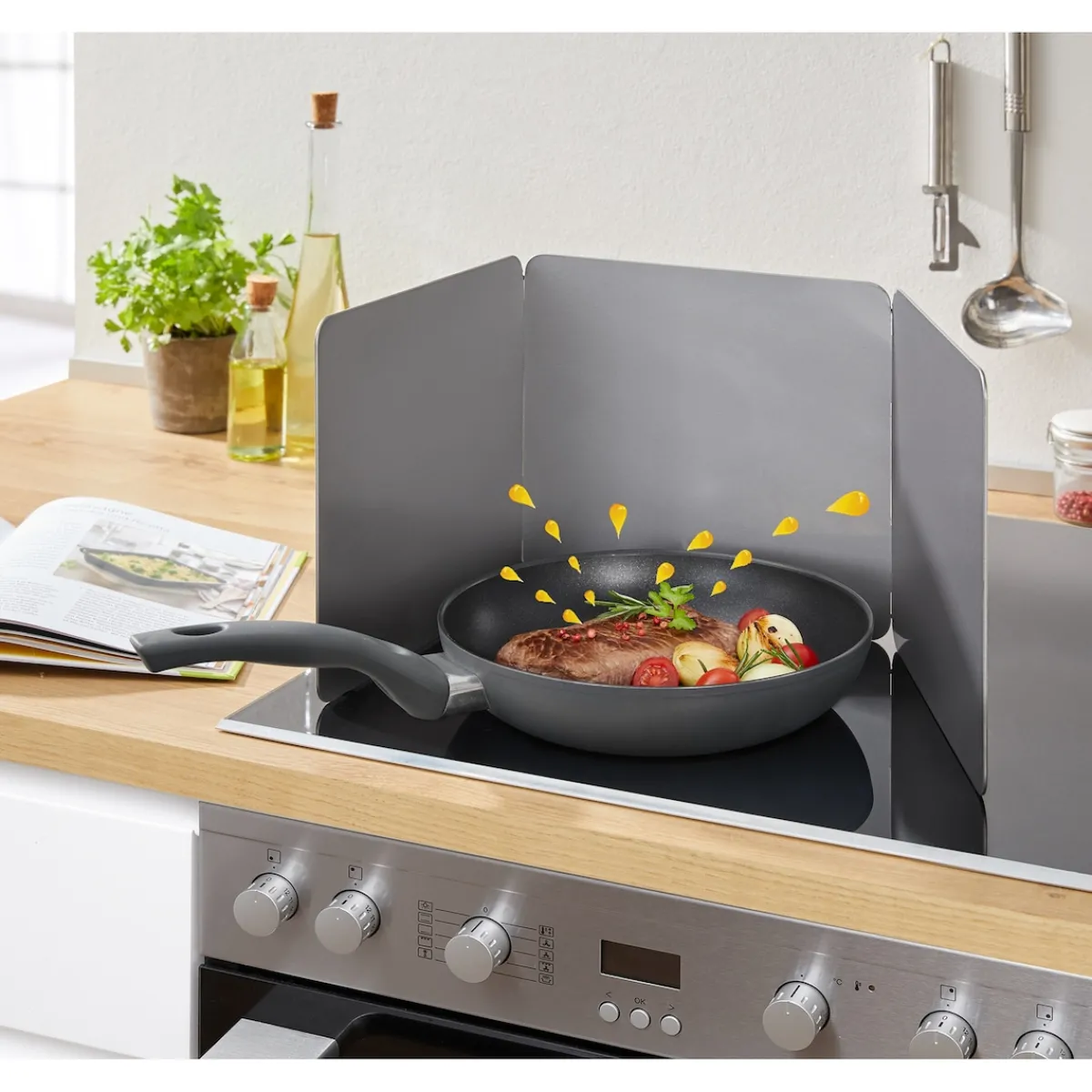 Jetzt wird es um Ihre spritzige Pfanne herum hochwertig! Der gold- oder silberfarbene, leicht abwaschbare Spritzschutz wird einfach um die Herdplatte platziert, so bleiben Herd und Küchenarbeitsfläche vor Fettspritzern geschützt.