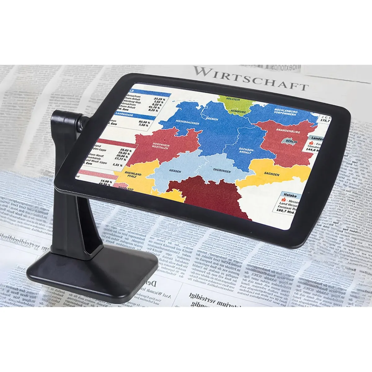 Auf ihrem stabilem Fuß steht „Flexi“ bombenfest. Und Sie können in Ruhe Handarbeiten, reparieren, Briefmarken betrachten… Lupe um 360° drehbar, damit Sie wirklich alles genau erkennen.