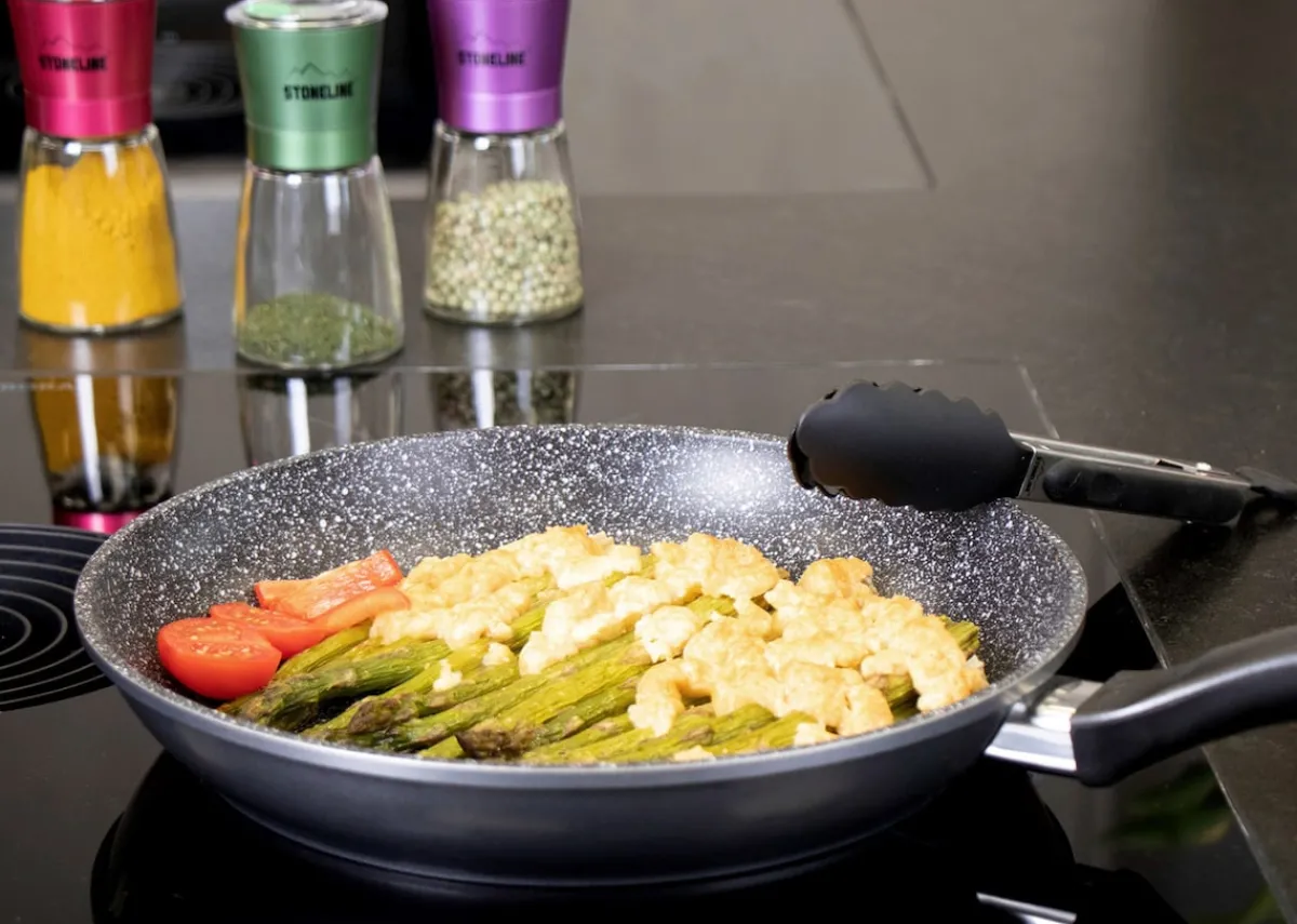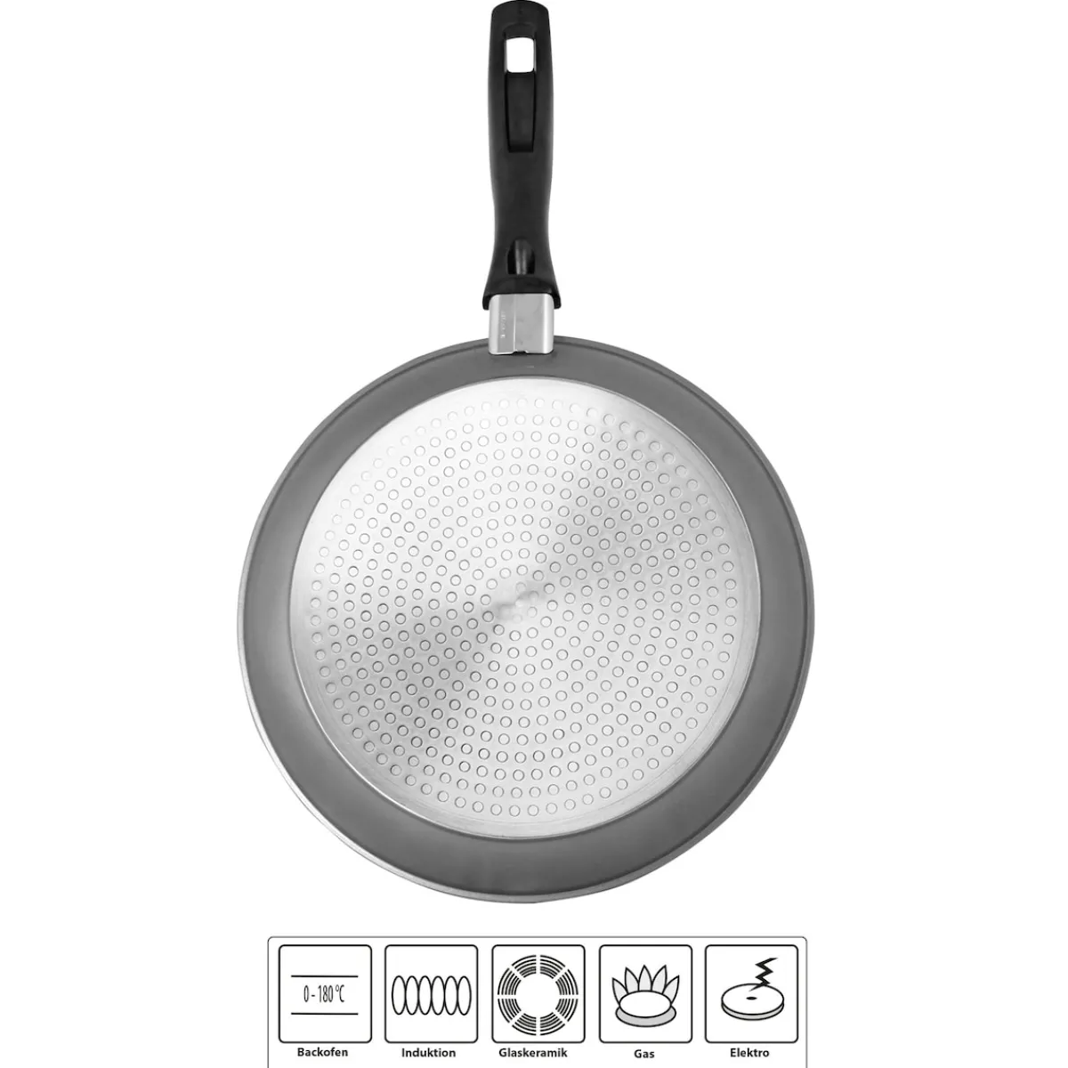STONELINE – Das Original! Gesund fettfrei kochen und braten!Diese Pfanne mit einem Durchmesser von 26 cm ist nicht zu klein und nicht zu groß.Bereiten Sie darin große oder kleine Mengen zu, ohne dass diese am Pfannenboden anhaften oder ankleben.Diese Bratpfanne ist für alle Herdarten geeignet, auch für Induktion. 1 Bratpfanne, Ø ca. 26 cm, Höhe: ca. 4,5 cm, ca. 1,8 l Die wichtigsten Vorteile des STONELINE Kochgeschirrs auf einen Blick: Weltweit einzige Antihaftbeschichtung mit echten Steinpartikeln Kratzfeste STONELINE-Antihaftbeschichtung Optimales Bratergebnis und kross gebratenes Fleisch Bester Geschmack Vitaminschonend kochen und braten ohne Fett und Öl Kein Anbrennen und kein Ankleben Super leicht zu reinigen für alle Herdarten geeignet, auch Induktion Extra starker, verzugfreier Boden Bodenstärke 4,5 mm Dieses Produkt ist backofengeeignet bis 180 °C Material: Aluminiumguss Reinigungs- und Pflegetipps: Vor dem ersten Gebrauch empfehlen wir, Ihr Kochgeschirr mit etwas Wasser und einem milden Spülmittel gründlich auszuwaschen. Verteilen Sie anschließend mit einem Papierküchentuch einige Tropfen Speiseöl auf der Beschichtung. Bei der weiteren Nutzung können Sie auf den Einsatz von Fett oder Öl verzichten! Dank dem Easy-Clean-Effekt wird die Reinigung per Hand empfohlen. Einfach mit heißem Wasser, Handspülmittel und einem weichen Schwamm auswischen.