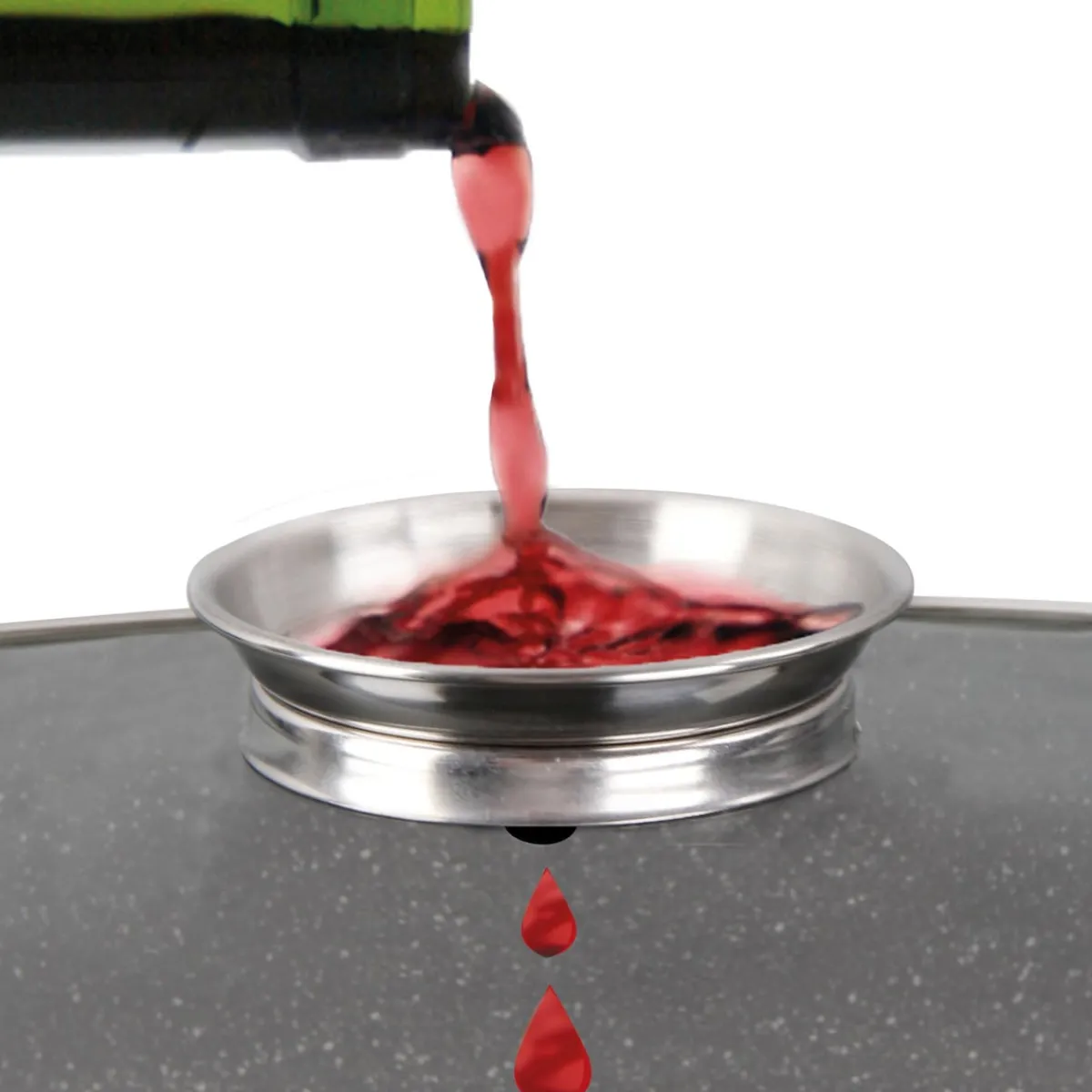 Die geniale STONELINE Beschichtung nun auch in Keramik-Ausführung!Gesundes, vitaminschonendes Kochen mit wenig Fett Mit dieser Servierpfanne servieren Sie Ihre Speisen ganz einfach vom Herd direkt auf den Tisch!Die beiden praktischen, kurzen Griffe sorgen dafür, dass Sie die große Pfanne auch dann noch im Griff haben, wenn sie gut gefüllt ist.Diese Servierpfanne ersetzt die herkömmliche Servierschüssel.So kommen Ihre Gerichte immer heiß auf den Tisch und bleiben länger heiß. Der einzigartige Aroma-Glasdeckel ermöglicht eine dosierte Zugabe von Flüssigkeiten wie z. B. Wein, flüssige Gewürze oder andere Essenzen über den Deckelknauf. So erhalten Ihre verfeinerten Speisen den unverkennbaren Geschmack der zugegebenen Aromen. Dank der extrem harten, langlebigen STONELINE CERAMIC Beschichtung mit Lotus Abperl-Effekt werden Sie zukünftig noch mehr Freude beim Zubereiten Ihrer Speisen haben! Hierbei spielt es keine Rolle, ob Sie auf Glaskeramik, Induktion, Elektro oder Gas kochen. 1 Servierpfanne, ø ca. 24 cm, Höhe: ca. 6,5 cm, ca. 2,4 l1 Aroma-Glasdeckel, ø ca. 24 cm Die wichtigsten Vorteile des STONELINE CERAMIC Kochgeschirrs auf einen Blick: Kratzfeste STONELINE- Keramikbeschichtung Optimales Bratergebnis und kross gebratenes Fleisch Bester Geschmack Vitaminschonend kochen und braten mit wenig Fett und Öl Kein Anbrennen und kein Ankleben Super leicht zu reinigen Für alle Herdarten geeignet, auch Induktion Extra starker, verzugsfreier Boden Beschichtung hitzebeständig bis 450 °C Zum Flambieren geeignet Bodenstärke: 3 mm Backofengeeignet bis 180 °C Material: AluminiumPFAS frei Reinigungs- und Pflegetipps: Vor dem ersten Gebrauch empfehlen wir, Ihr Koch- oder Backgeschirr mit etwas Wasser und einem milden Spülmittel gründlich auszuwaschen.Verteilen Sie anschließend mit einem Papierküchentuch einige Tropfen Speiseöl auf der Beschichtung.Dank dem Easy-Clean-Effekt wird die Reinigung per Hand empfohlen. Einfach mit heißem Wasser, Handspülmittel und einem weichen Schwamm auswischen.