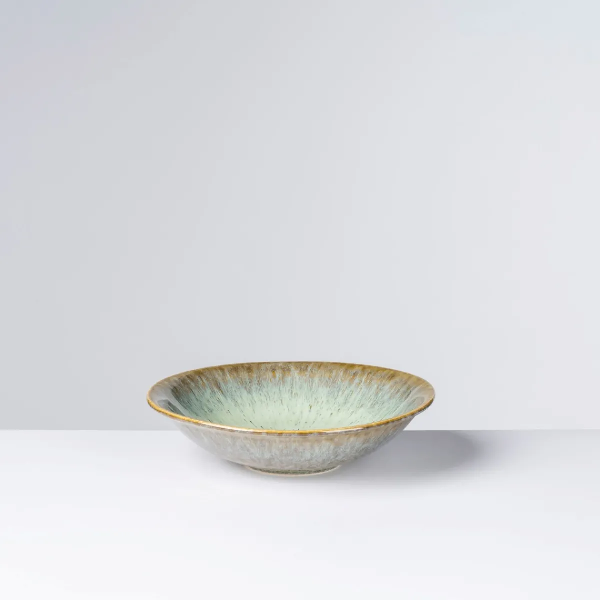 Die Keramik-Geschirr-Serie „Flussufer“ der österreichischen Marke Gipfelstück bringt die Schönheit der Alpen auf Ihren Esstisch. Inspiriert von einem Bergfluss, dessen klares Wasser sich seinen Weg durch grüne Täler und moosbewachsene Steine bahnt, beeindruckt das hochwertige, modern geformte Geschirr-Set durch seinen besonderen Farbverlauf von braun und grün zu blau. Dank der glänzenden, mehrstufig aufgetragenen Reaktivglasur ist jedes Keramikteil ein handgemachtes Einzelstück; aus europäischer Produktion hergestellt in Portugal. Das aus robustem Steinzeug gefertigte, einzigartige Keramikgeschirr ist mikrowellen- und spülmaschinengeeignet und somit auch alltagstauglich und pflegeleicht. Dieses Geschirrset wird klimaneutral in einer auf Bruchsicherheit getesteten Paketversandverpackung aus ressourcenschonenden Materialien versendet. Um eine objektive Vergleichbarkeit zu gewährleisten, gehen unsere Füllmengenangaben von einer randvollen Befüllung aus.