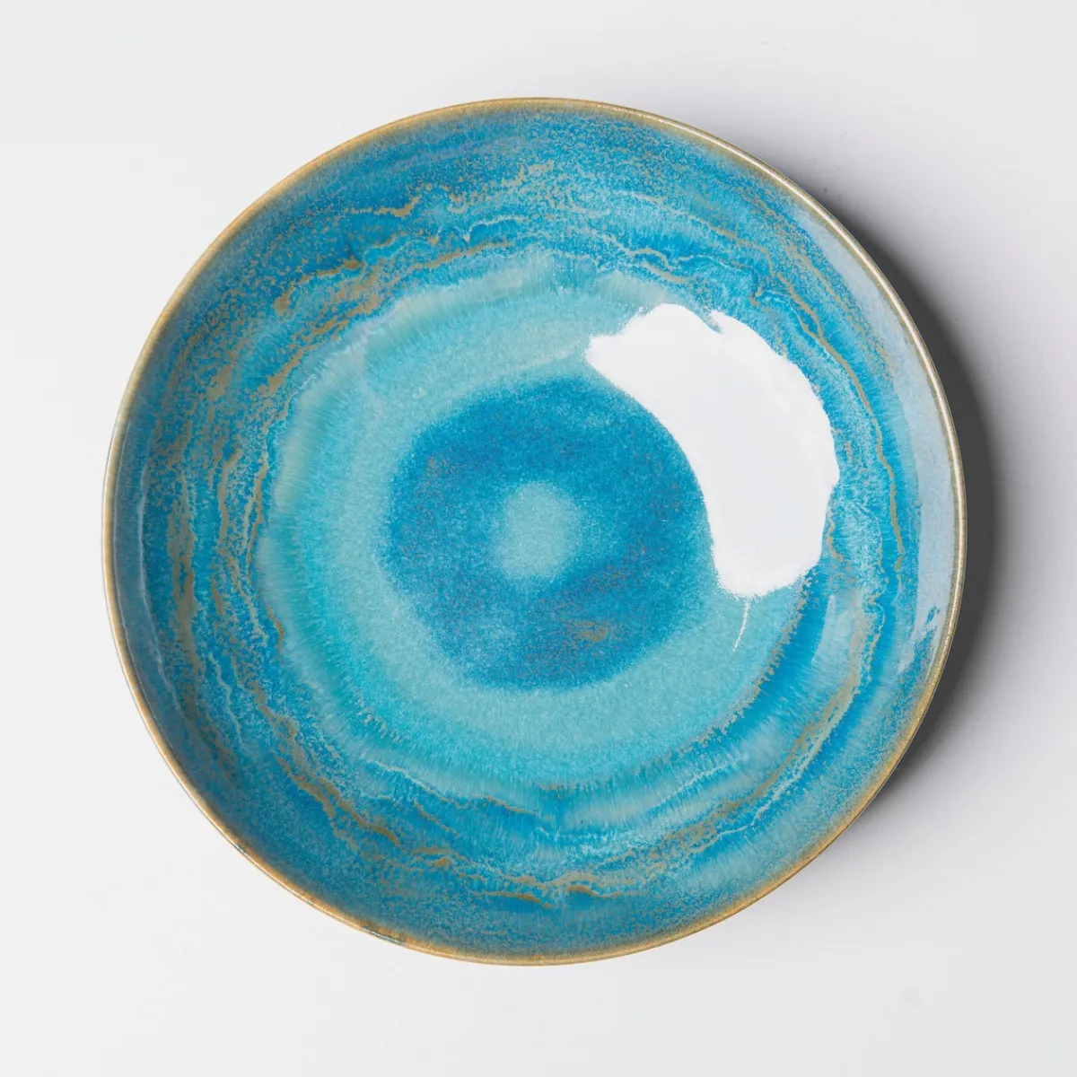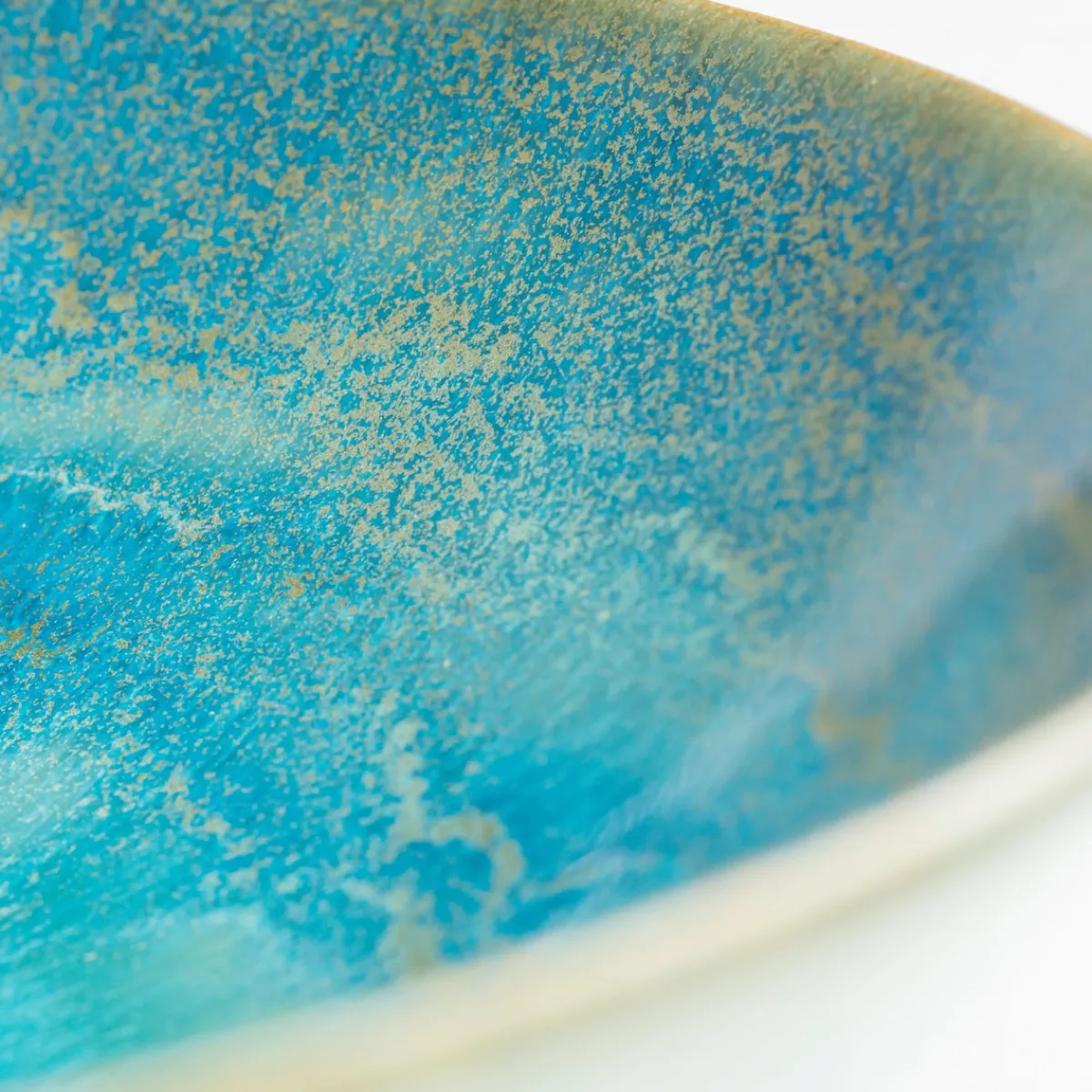 Wohl in jeder Alpenregion gibt es ihn: Den tiefen See, um den sich Legenden ranken. Der zum Baden meist zu kalt ist. Der Ruhe ausstrahlt und zum Verweilen einlädt. Die facettenreiche Kollektion Tiefer See mit ihren ineinanderfließenden Farbnuancen ist eine Hommage an diesen ganz besonderen Ort. An ihren Rändern spiegeln sich die umgebenden Berge auf einer sich kräuselnden Wasseroberfläche. Ihre beinahe dreidimensional erscheinende Mitte bringt die Kraft der Tiefe und Stille auf den Esstisch.