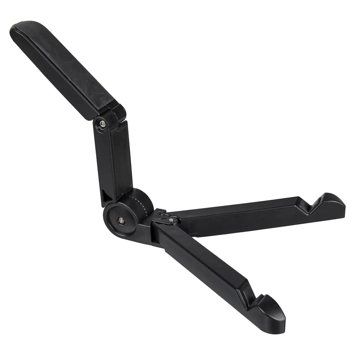 Handlich klein, im Nutzen ganz groß. Dank individuell einstellbarem Neigungswinkel finden Smartphone und Tablet horizontal oder vertikal stets sicheren Halt. Mit rutschhemmender Auflage, platzsparend zusammenklappbar.