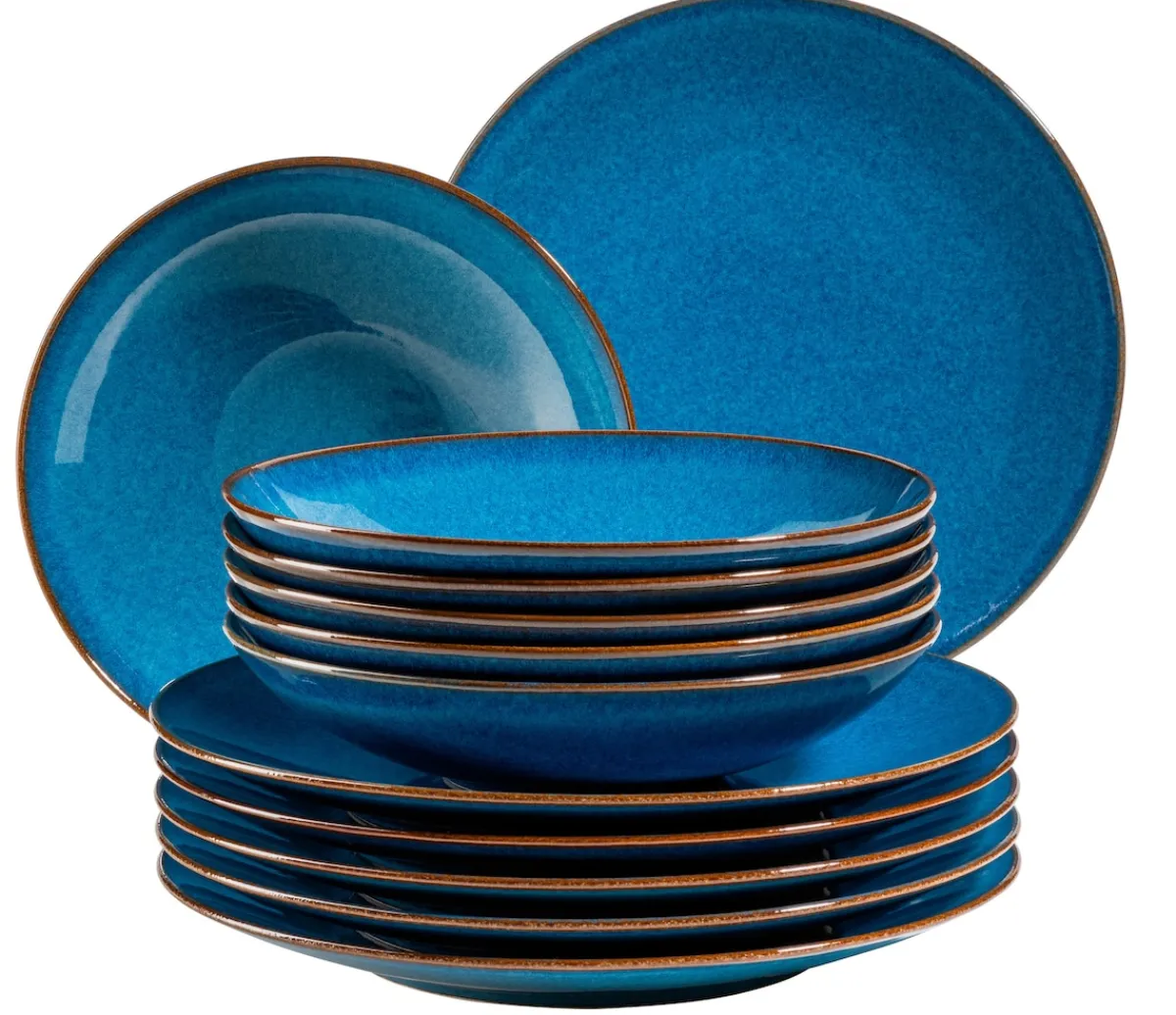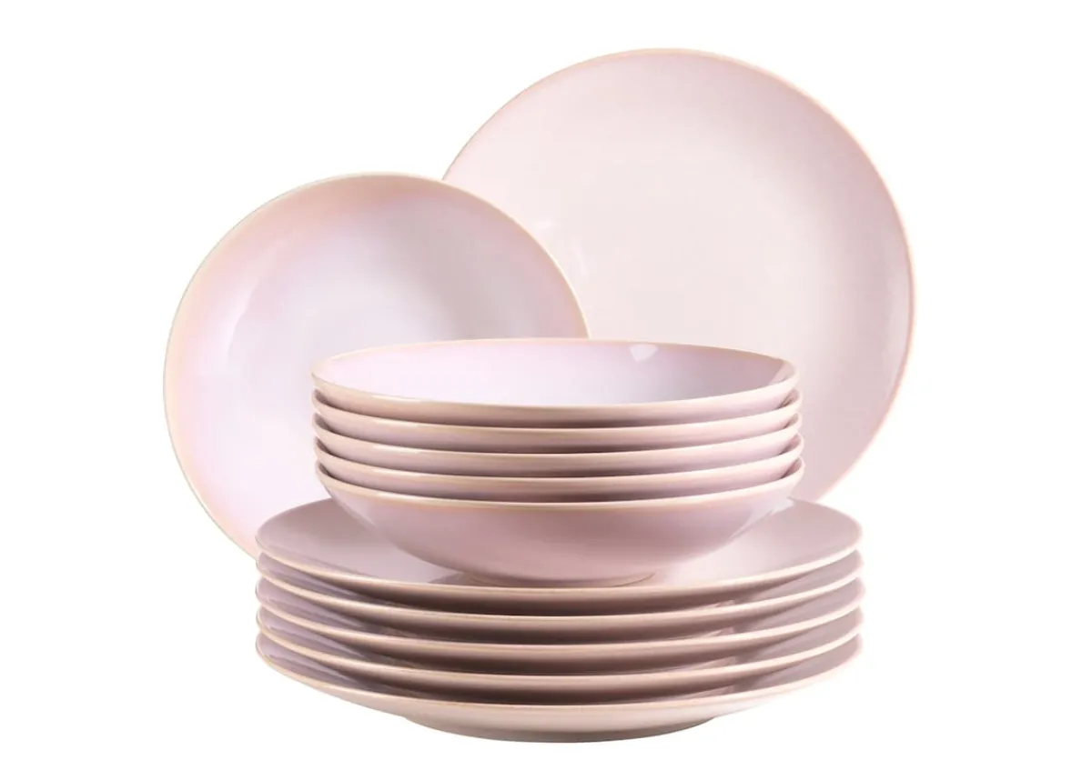 Dieses 12-teilige Essgeschirr Set für 6 Personen aus hochwertigem Keramik besteht aus