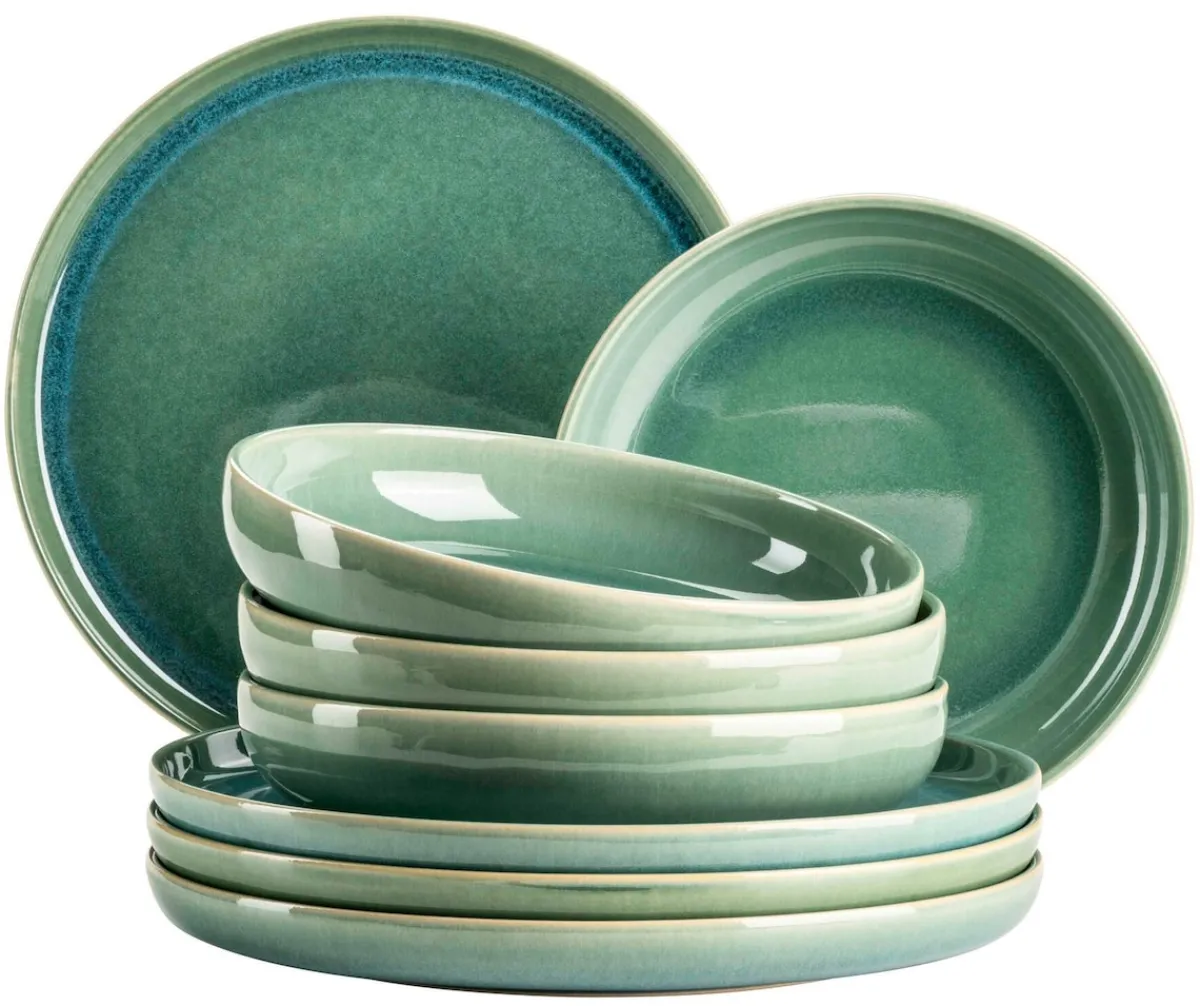 Aufregende Naturfarbtöne in verschiedenen Farbwelten fließen auf der Steinzeuggeschirr-Kollektion „Elina Uno“ der österreichischen Traditionsmarke MÄSER ineinander und bilden auf jedem Teller, jeder Tasse und jeder Schale ein einzigartiges Muster aus, welches je nach Lichteinfall in unterschiedlichen Nuancen schimmert. Die besondere Glasurtechnik dieser außergewöhnlichen Essgeschirr-Serie macht jedes Teil zu einem echten Unikat. Die beiden Farbwelten Jungle und Beach lassen sich harmonisch miteinander kombinieren und bringen ein unvergleichliches tropisches Feeling auf Ihren Esstisch. Mit ihren großzügig-schlichten skandinavischen Formen bietet die Serie „Elina Uno“ viel Raum für Ihre kulinarischen Kreationen sowie für Dekoration.