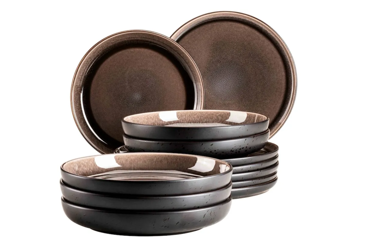 Die unvergleichliche Keramikgeschirr-Serie „Niara“ der österreichischen Traditionsmarke Mäser verbindet auf einzigartige Weise selbstbewusste skandinavische Formen mit zwei unterschiedlichen, aufwändigen Glasurtechniken: Auf den Ober- bzw. Innenseiten der Geschirrteile fließen strahlende Farbschattierungen auf schwarzem Untergrund zu wunderbaren Maserungen zusammen. Die Außen- bzw. Unterseiten hingegen bestechen durch eine Mattglasur in Schwarz, welche mit glänzenden schwarzen Sprenkeln überzogen wurde. Durch die händisch aufgetragenen Farben ist jedes Teil in dieser Kollektion auf allen Seiten einzigartig gemustert. Mit ihrem exquisiten und individuellen Charakter ist die Kollektion „Niara“ ein echter Hingucker auf jedem Esstisch. Gefertigt aus langlebigem, hochwertigem Steinzeug (welches nicht mit dem deutlich brüchigeren Steingut zu verwechseln ist) wird Ihnen dieses Geschirrset lange Freude bereiten. Selbstverständlich ist die gesamte Serie „Niara“ mikrowellen- und spülmaschinengeeignet. Dieses Set wird in einer vielfach auf Bruchsicherheit getesteten Paketversandverpackung aus ressourcenschonenden Materialien versendet. Bitte beachten Sie: Diese Kollektion wird händisch lasiert, wodurch minimale Unebenheiten der Glasur, kleine Einschlüsse und leichte Farbabweichungen auftreten können. Zur besseren objektiven Vergleichbarkeit gehen unsere Füllmengenangaben von einer randvollen Befüllung aus.