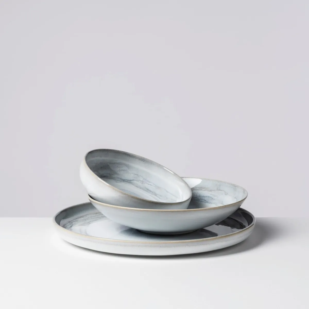 Wohl in jeder Alpenregion gibt es ihn: Den tiefen See, um den sich Legenden ranken. Der zum Baden meist zu kalt ist. Der Ruhe ausstrahlt und zum Verweilen einlädt. Die facettenreiche Kollektion Tiefer See mit ihren ineinanderfließenden Farbnuancen ist eine Hommage an diesen ganz besonderen Ort. An ihren Rändern spiegeln sich die umgebenden Berge auf einer sich kräuselnden Wasseroberfläche. Ihre beinahe dreidimensional erscheinende Mitte bringt die Kraft der Tiefe und Stille auf den Esstisch.