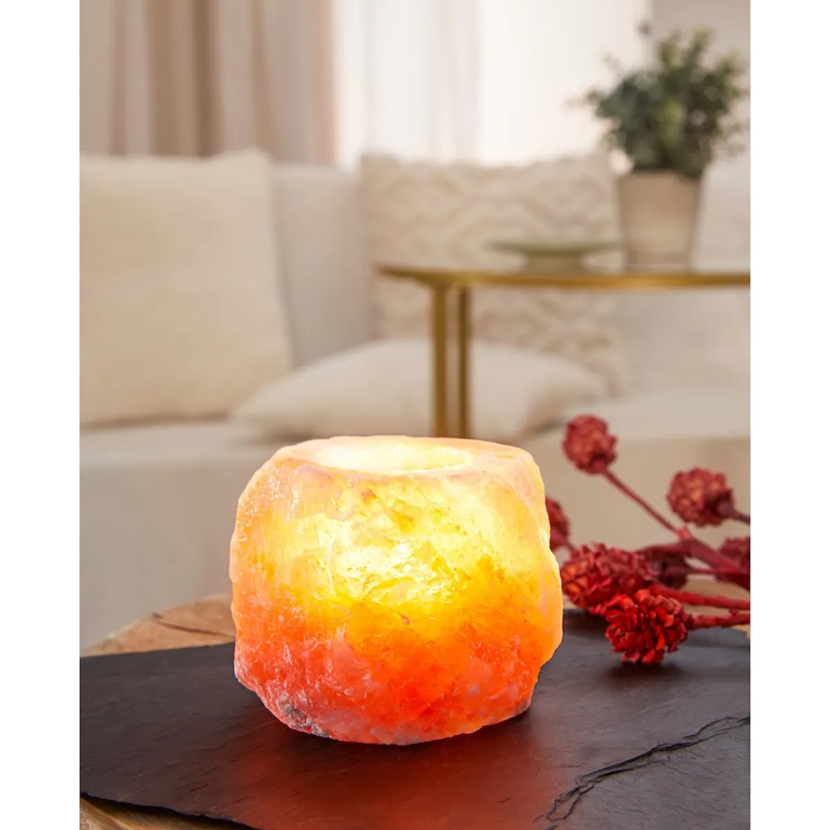 Mit diesem handgefertigten Teelichthalter, der von innen heraus leuchtet, tauchen Sie jedes Zimmer in ein warmes Licht. Das Schimmern des Salzkristalls sorgt für eine ganz besondere Atmosphäre.