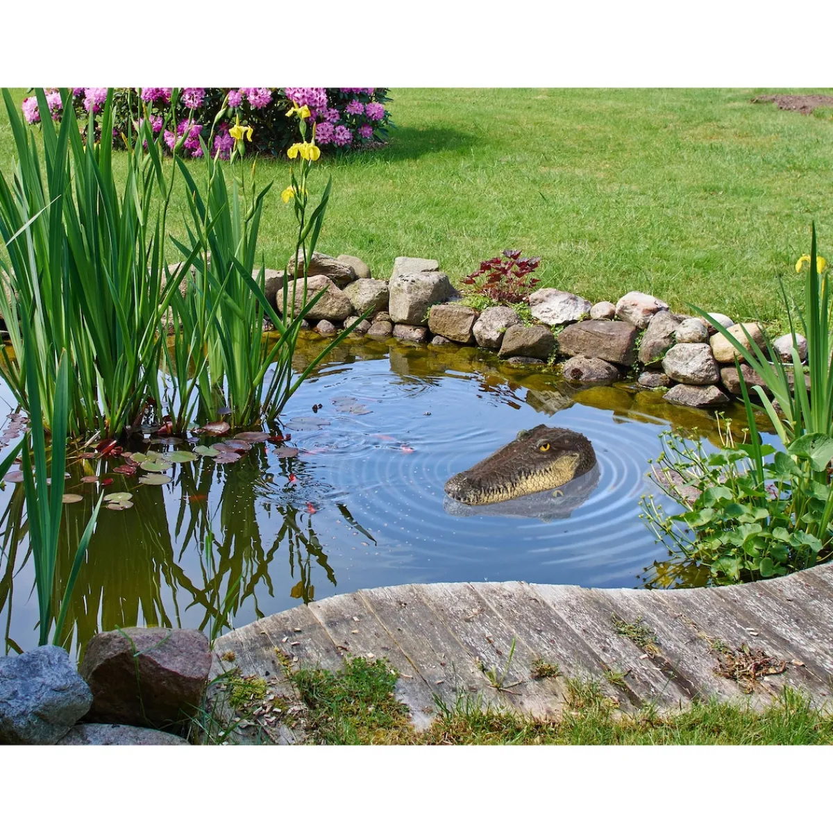 Da werden Ihre Gäste ihren Augen nicht trauen: Ein täuschend echter Krokodilkopf, der sich im Wasser bewegt – das ist Nervenkitzel pur! Sorgen Sie mit diesem Teich-Krokodil für aufregende Akzente im heimischen Gartenteich und genießen Sie ein tropisches Abenteuer ganz ohne Risiko!