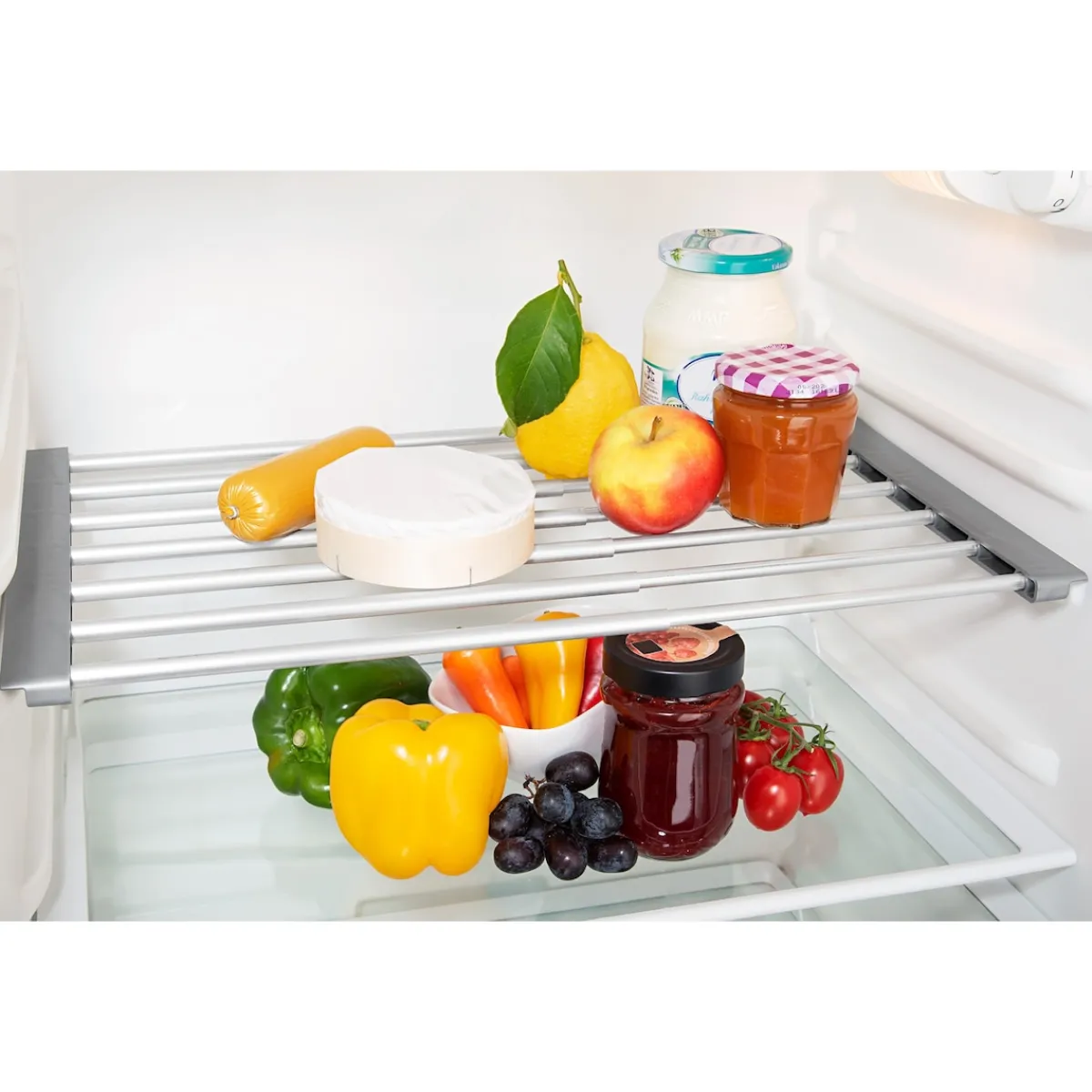 Schaffen Sie zusätzlichen Platz in Ihrem Kühlschrank! Der Teleskop-Kühlschrankboden von RUCO kann von 36 cm bis 58 cm ausgezogen werden, dadurch passt er in die unterschiedlichen Kühlschrankbreiten und bietet im Nu zusätzlichen Stauraum.