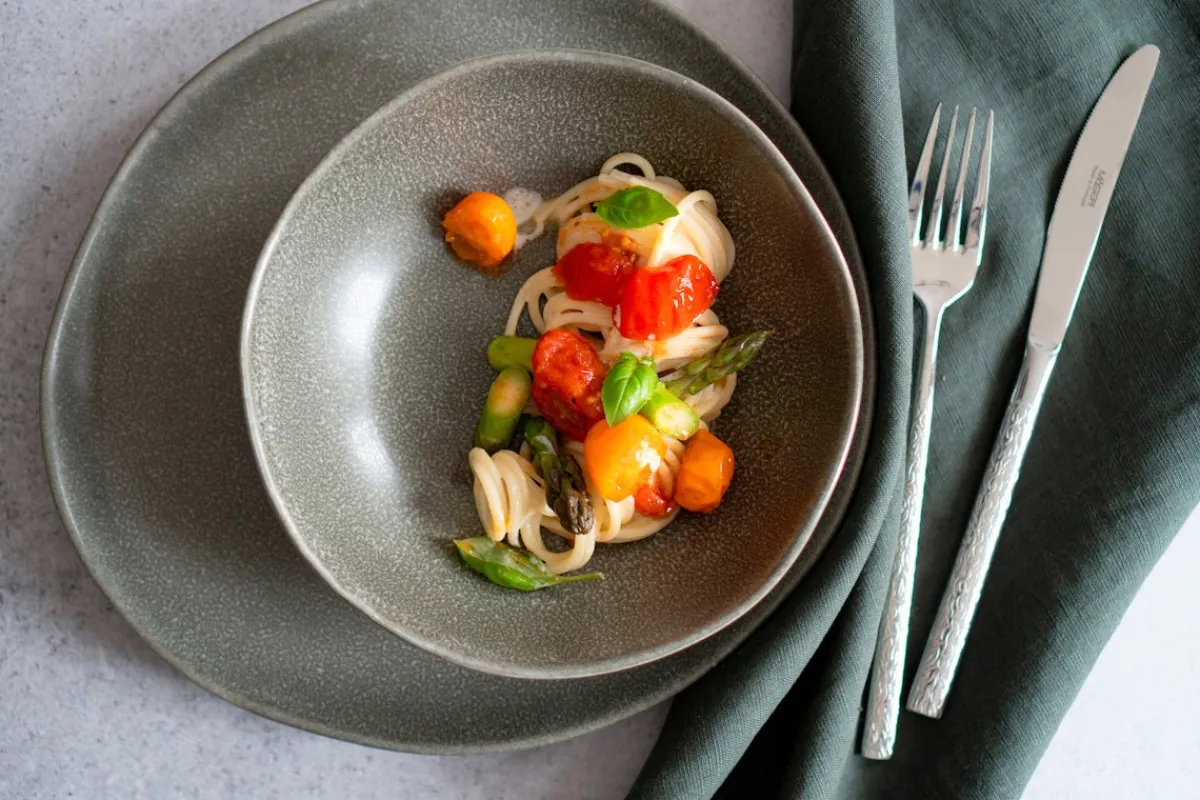 Die Keramikgeschirr Serie „Marlena“ vereint eine außergewöhnliche, unregelmäßige Form mit einer edlen, weiß gesprenkelten Glasur in Dunkelgrau. Die Speiseteller, Frühstücksteller und tiefen Teller sind vielseitig einsetzbar, sodass das Essservice in Ihrem Zuhause oft zum Einsatz kommt. Das modern-schlichte Tellerset lässt sich perfekt zu individueller Dekoration im Vintage Stil kombinieren und lässt Ihre Speisen so richtig toll zur Geltung kommen.